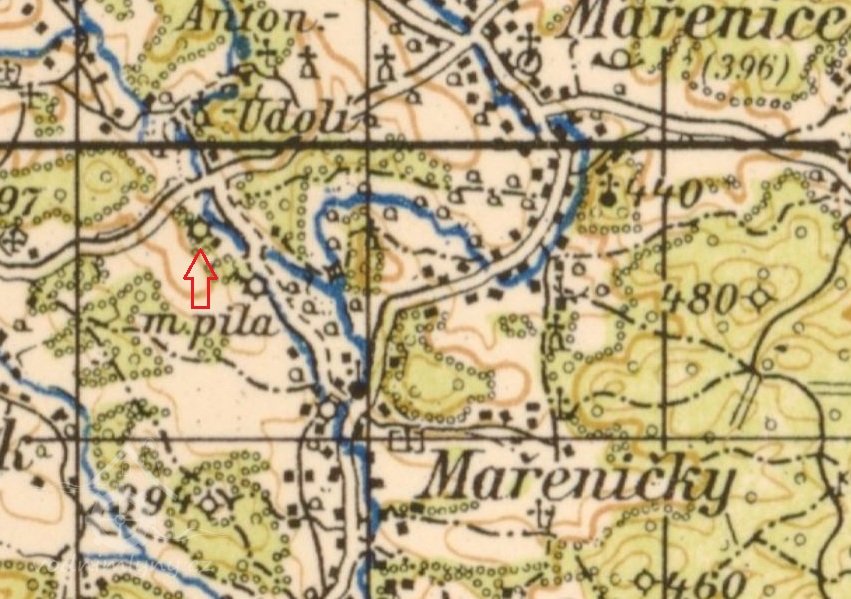 mapa pozemkového katastru na podkladu topografické mapy, 1923-1956, © http://geoportal.gepro.cz/#/