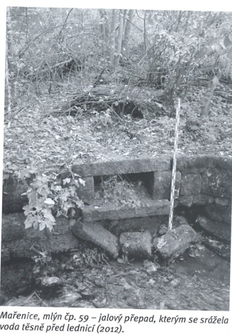 Objekt patřil mezi tzv. nové mlýny na zákupském panství, byl vystavěn roku 1727 na místě starší zahradnické usedlosti. První zápis v pozemkové knize k tomuto roku jej nazývá „mařenický horní nový mlýn“ s jedním složením. Mlynář Wenzel Kreibich musel při zanesení do pozemkové knihy zaplatit 100 zl., ročně pak platil vrchnosti 8 zl., 2 strychy pšenice a 16 strychů žita na vykrmení vepřů, a dále v naturáliích 2 věrtele žita a 2 věrtele ovsa.
