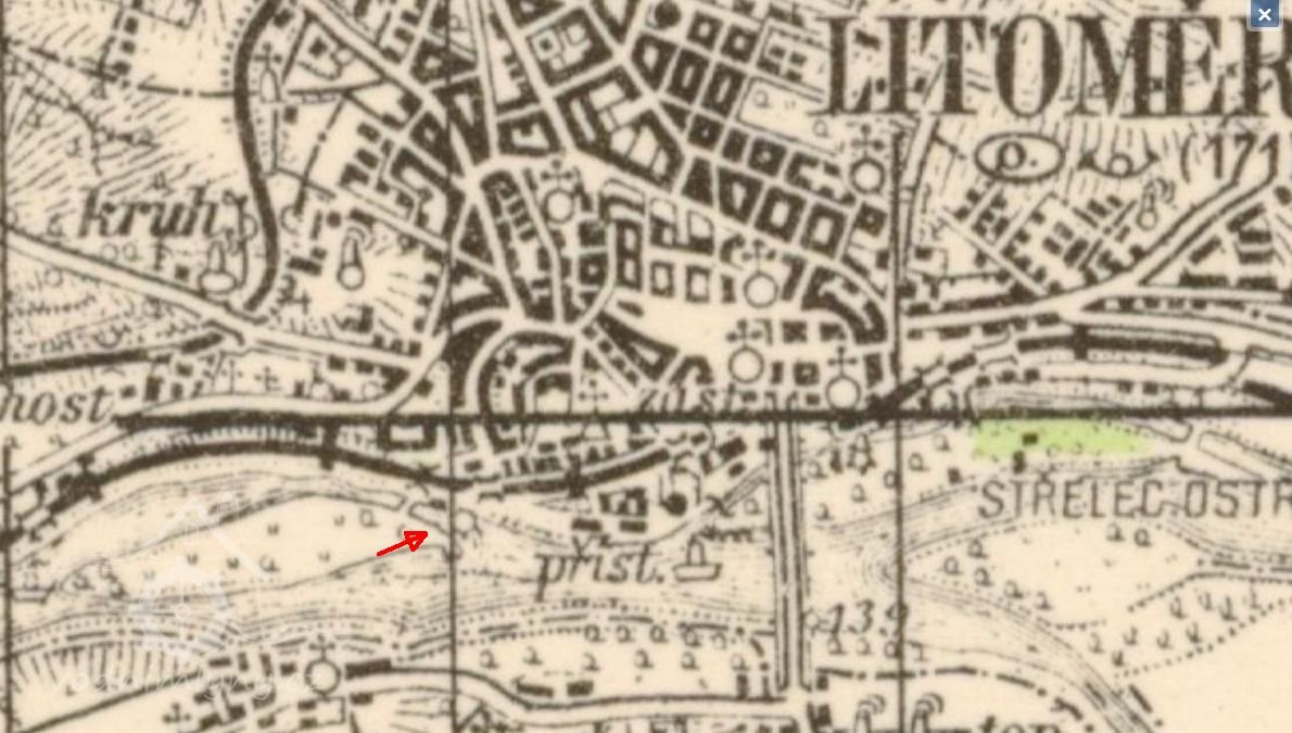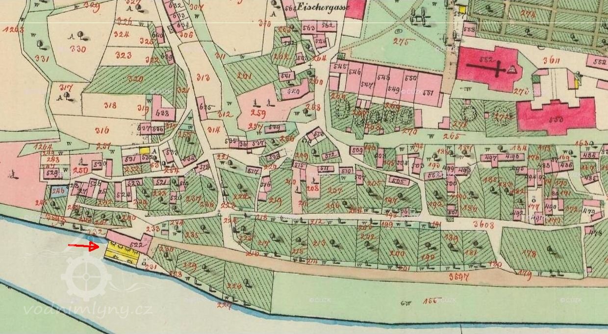 Mlýna pila josu zakresleny na II. vojenském mapování, na císařských povinných otiscích a indikační skice. Na císařských povinných otiscích je část mlýna - mlýnice znázorněna jako dřevěná budova s čtyřmi koly na jedné a dvěmi koly na druhé straně. Na indikační skice se třemi koly na jedné a dvěmi koly na druhé straně. Jednalo se tedy o velký mlýn s pilou, který mohla vlastnit Litoměřická kapitula.