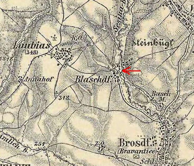 Dne 14. května 1724 koupil mlýn od Kateřiny vdovy po Janu Jiřím Horákovi její syn Matěj Horák. Ve smlouvě je napsáno, že se kupuje a prodává ve Lhotce u Lubojat ležící dědičný mlýn se všemi právy za celkovou sumu 125 tolarů opavského počtu. V pozdějších letech zůstával mlýn v rodině Horákových až do roku 1818, kdy ho získal Jan Knop z Jistebníku a po něm jiní Němci z okolí. Od druhé poloviny 18. stol. byla Lhotka osídlena až do roku 1945 převážně německy mluvícími obyvateli. V této době se ves jmenovala Blaschdorf.