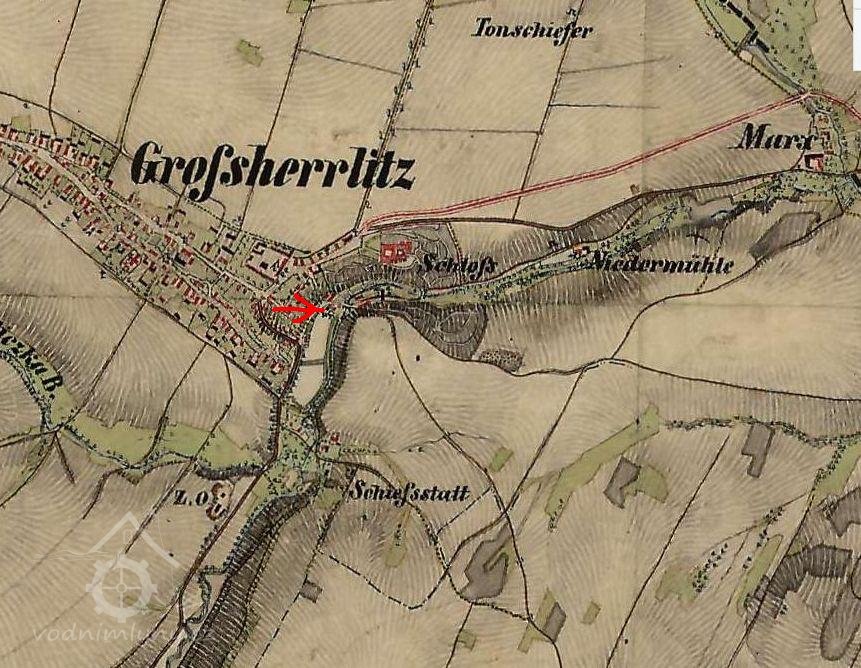 Horní, nebo také Zámecký mlýn ve Velkých Heralticích se připomíná prvně v listině z 1. května 1626, kterou Václav z Oppersdorfu osvobodil Michaela Spandleho, tesaře, jenž koupil od vrchnosti Horní mlýn ve Velkých Heralticích o dvou chodech, s olejnou atd, od roboty, potvrzuje mu zdarma potřebné dřevo na opravu mlýna a robotníky na čištění mlýnské strouhy. Roční činži platí 13 tol., na císařské daně přispívá 20 tol. Už dříve, roku 1608, se zmiňuje mlynář Bartl / Bartoloměj/ Rawer, který se k mustruňku dostavil s ručnicí a mečem.
