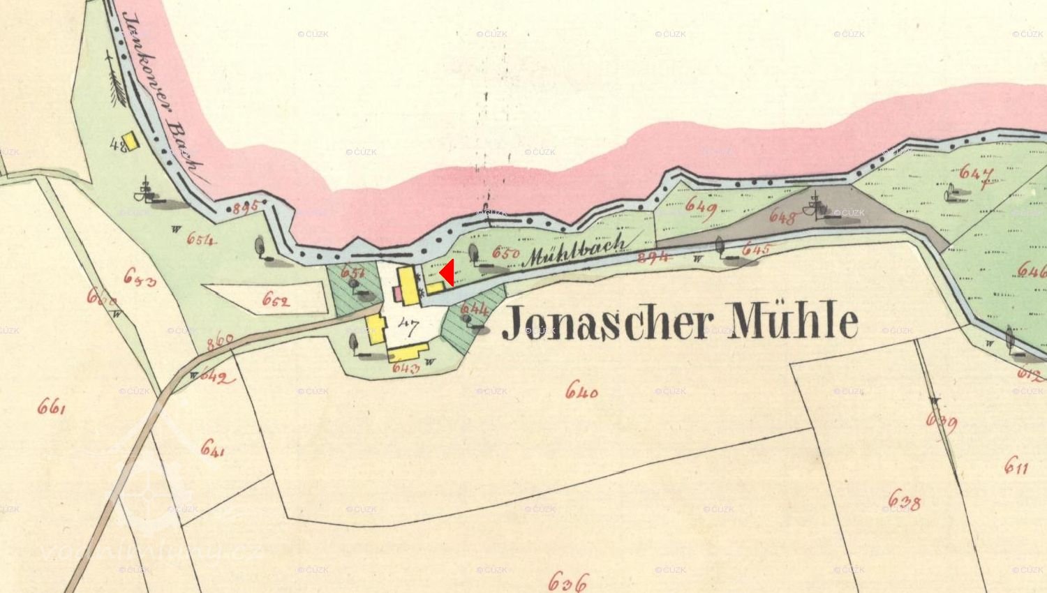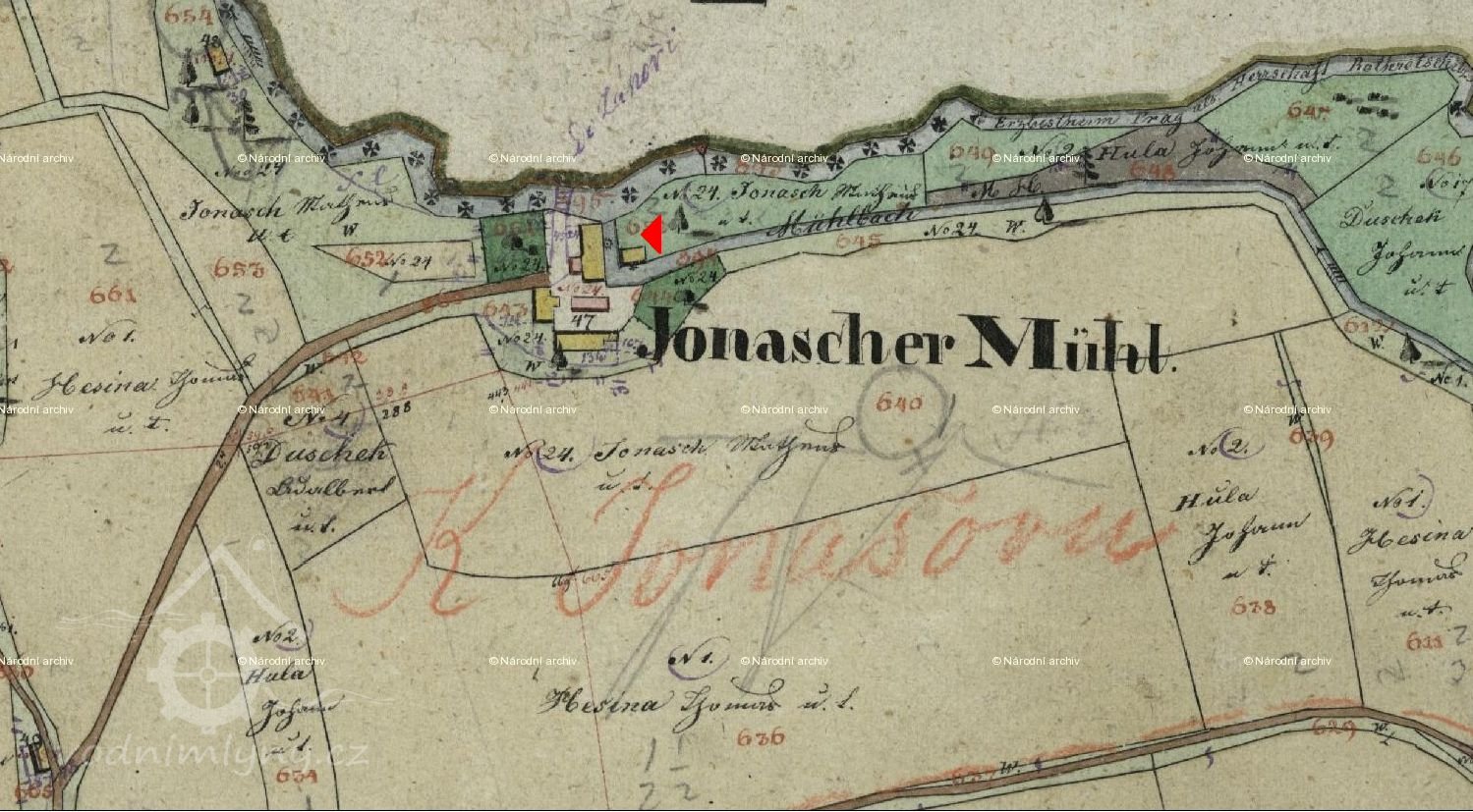 Při silnici z Pelhřimova do Humpolce stojí budovy bývalého Jonášova mlýna. Mlýn je vzpomínán již v první matrice fary Mladé Bříště z počátku 18. století. Mlýn měl až pět vodních kol a byla při něm pila, šindelka a přádelna vlny. V třicátých letech minulého století byla instalována Francisova turbína, která pracuje doposud. Ve fondech SOkA Pelhřimov jsou poměrně kompletní dokumenty od roku 1881 do roku 1943.