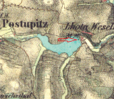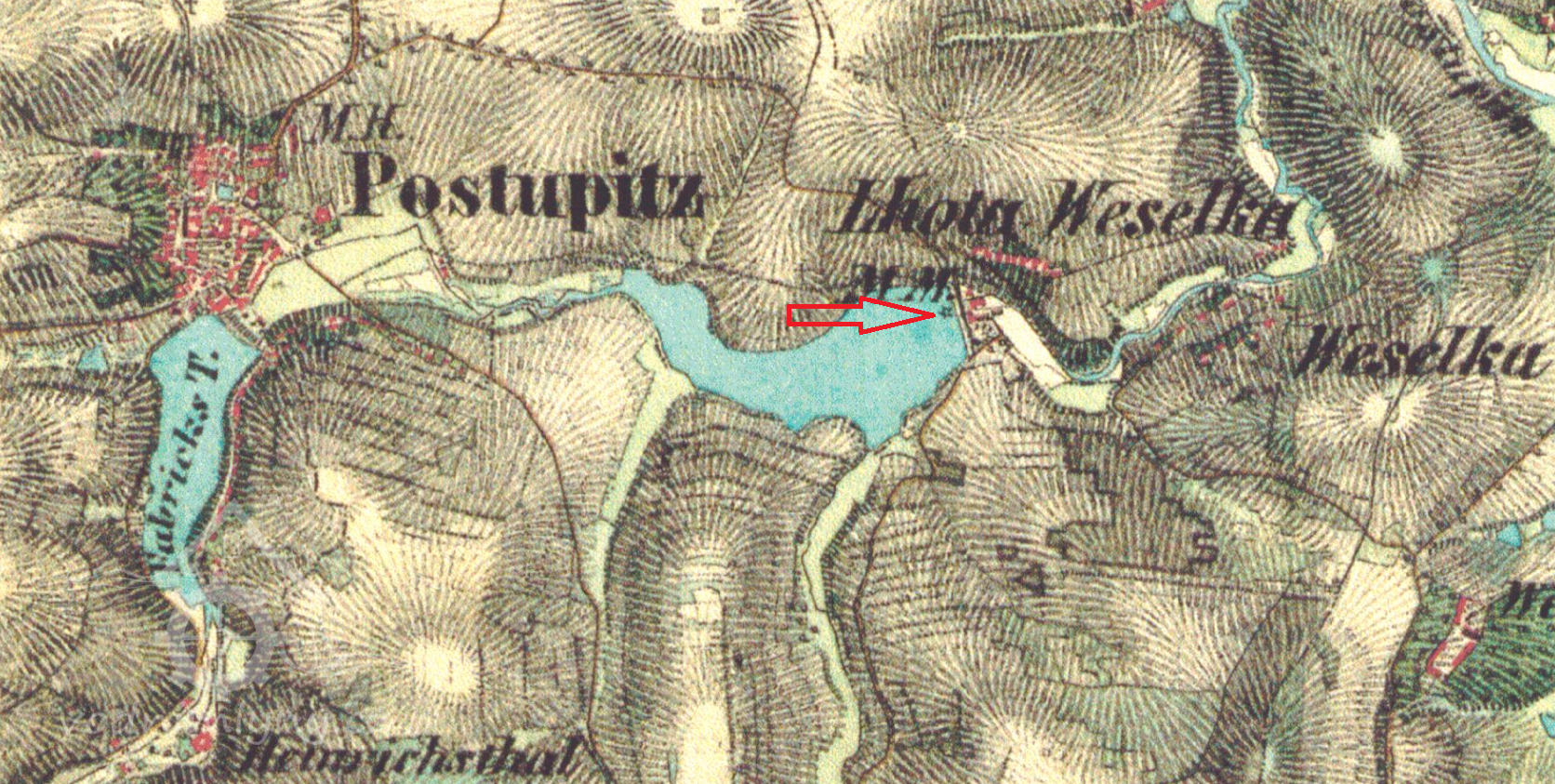 Postupický rybník „Papírník“ byl protržen téměř v celé délce hráze. Pila, kůlny a ostatní stavení, které byly hned pod hrází, ve chvíli zmizely a dílo zkázy se bleskurychle šířilo dál k Paurovu mlýnu „Na Lhotce“. V cestě stála ještě továrna na porcelán, masivní dvoupatrová budova, která byla rovněž pobořena a smetena. Ačkoli Paurův mlýn byl velmi důkladně stavěn, přece jen brzy podlehl nesmírnému tlaku vody. Jen klenutá světnice při stájích, kde bydlel kočí Málek, vydržela. I tuto místnost voda neúprosně zatápěla. Nevida jiné možnosti vylezl kočí Málek po zamřížovaném okně ke stropu a držel se upevněného kruhu. Jeho žena vylezla za ním a držela se ho kolem krku. Bylo štěstí, že je voda nadnášela, jinak by těžko vydrželi. Voda jim dosahovala až po ústa, s vypětím všech sil vydrželi, než opadla.