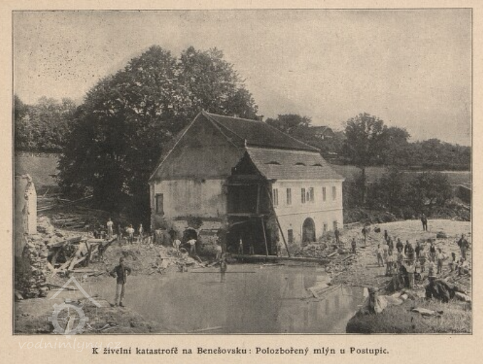 O dalším pokračování této tragické události se dozvídáme z postupické kroniky Karla V. Mixy, jež sepsal v letech 1923 - 1924: „Ačkoliv stavení a ostatní mlýnské budovy byly velmi důkladné, podlehly přece dravému živlu. V klenutém čeledníku bylnucen kočí František Málek se ženou vylézti rychle po zamřížovaném okně ke stropu. Zde drže se železného stropního kruhu stál na okenní mříži. Žena držela se ho kolem krku. Voda zaplavila celou místnost až asi na 20 cm od stropu. S nasazením všech sil drželi se kruhu po celé dvě hodiny. Po povodni se dozvěděli, že voda vystoupila ve skutečnosti o mnoho výše, nežli zažili oni. Stoupnutí vody ve světnici a utonutí manželů Málkových zabránil toliko stlačený vzduch pod klenutím.