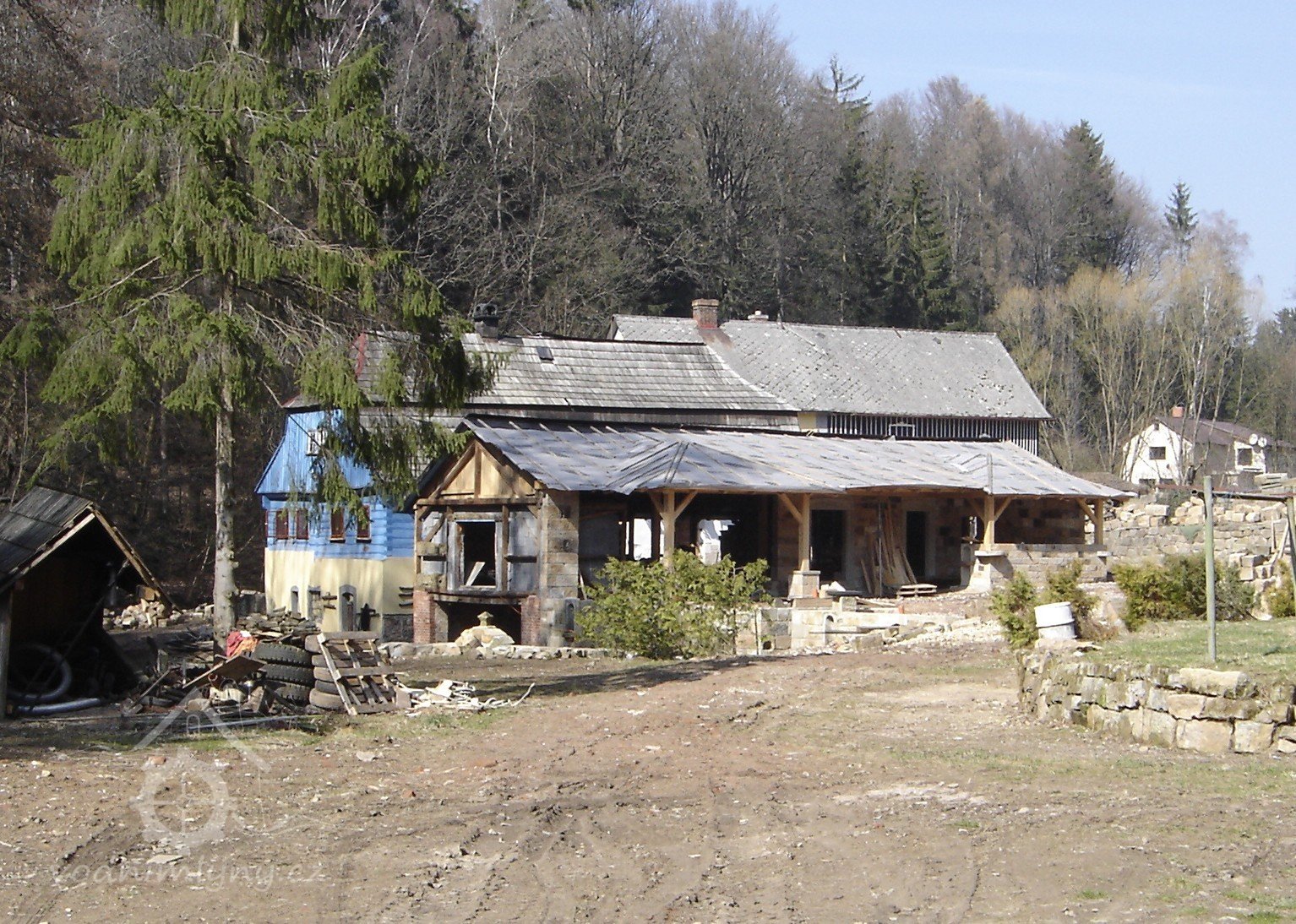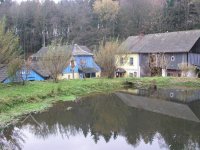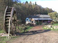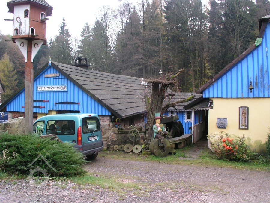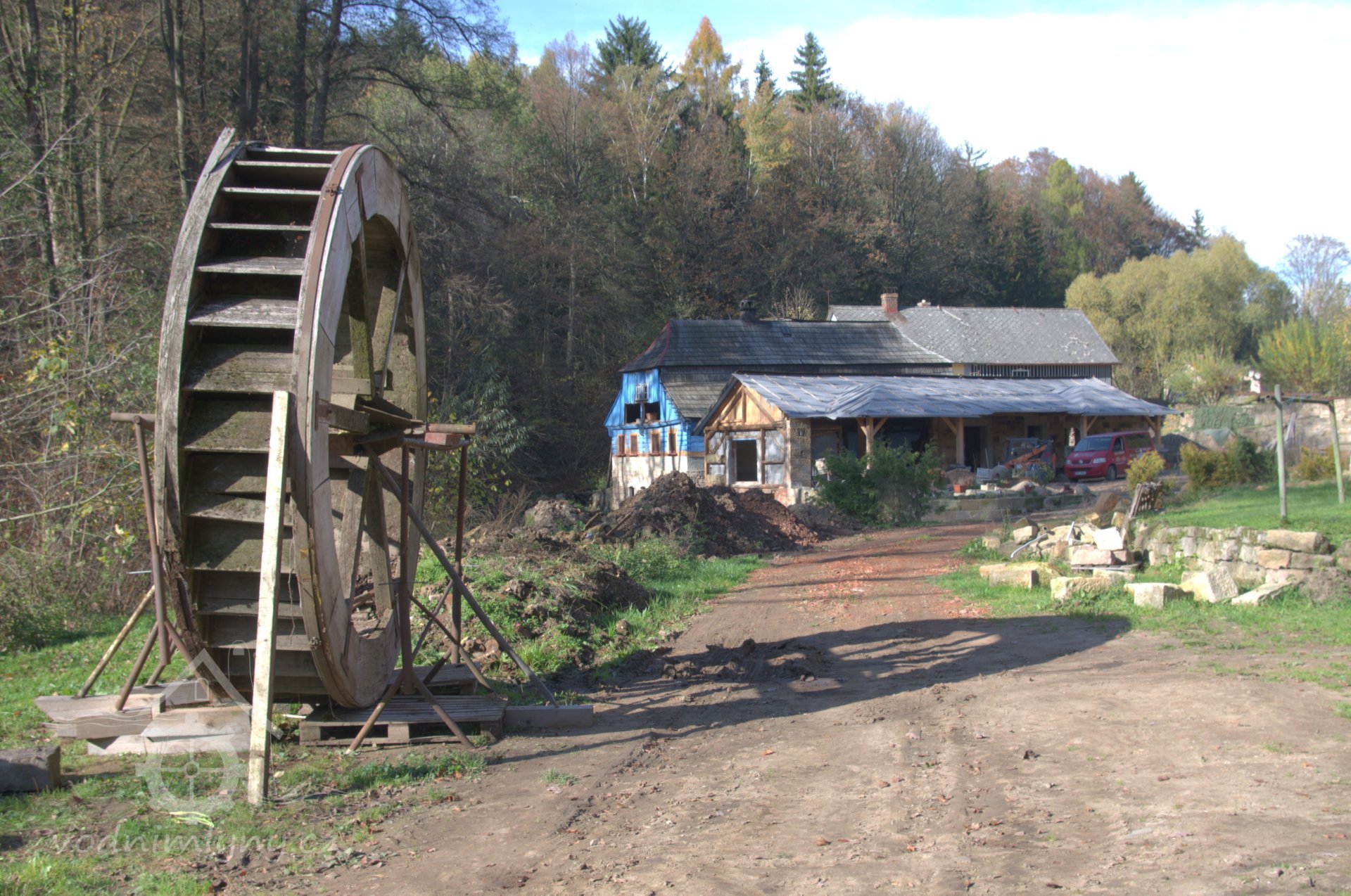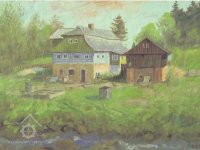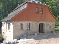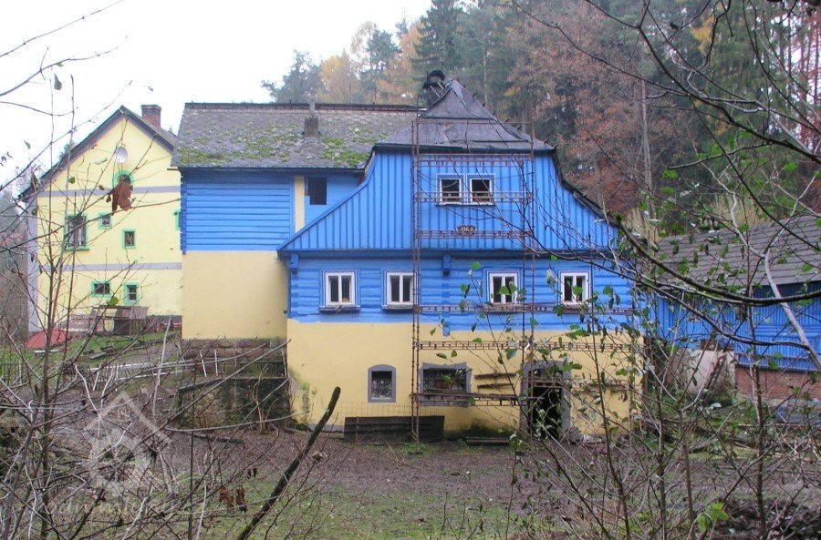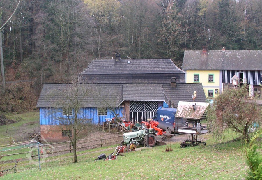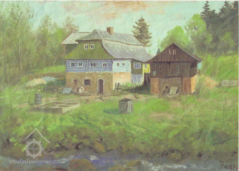 V létě roku 1945 (na národní výzvu o osídlování pohraničí po II. světové válce), zažádal příslušné úřady o přidělení opuštěného mlýna pan Václav Červený I. (můj děda ze strany otce), nar. 28. 9. 1904 v Jaroměří, zemř. 30. 6. 1977 v Komárově, vyučený jako mlynářský tovaryš - za války zaměstnán jako mládek ve mlýně Dvůr Králové n.L. - Verdek. Celý komplex: Mlýn, pekárna a pila včetně okolních pozemků, pole, louky, les, rybníky atd., byl v majetku paní Anny Patzak, která musela vše opustit a jako Němka spadala do odsunu z pohraničí v prvním sledu. Po jejím odchodu projevili o mlýn zájem bratři Sokolíkové. Byli to ale zřejmě jen "zlatokopové", kteří tu pobyli pouze několik týdnů. Údajně vše prohledali, co mělo pro ně nějakou cenu tak odvezli a aniž by vůbec zažádali o přiděleni, tak zase zmizeli. Bezprostředně po jejich odchodu přišel děda s plnou hlavou ideálů. Po pár měsících zkoušek a drobných úprav děda mlýn spustil na stávajícím zařízení. Místní sedláci jezdili s pšenicí k semletí, ale protože jejich finanční možnosti se rovnaly téměř nule a hotovosti nikdo z nich neoplýval, tak v drtivé většině bylo mleti a šrotování na dluh. Systém: Děkuju ti Václave a srovnáme to příště, nemohl zákonitě fungovat dlouho. Tento stav vedl dědu k rozhodnuti, že se mlýn odstaví a po dobu kompletní rekonstrukce bude v celoroční činnosti pouze pila. Předpokládal, že se po dobu odstávky taky trochu zlepší finanční možnosti zákazníků. Zařízení pily bylo v solidním stavu a strojový park měl dostatečně pokrýt tehdejší poptávku po řezivu a trámech na opravy opuštěných a zchátralých usedlosti v okolí, kam se čas od času nastěhovali nově příchozí osídlovatelé. Následovalo období, kdy bylo potřeba namalovat a schválit nějaké plány, vyměnit rozmístění strojů a skloubit veškeré návaznosti. Po vyhotoveni seznamů, přišlo na každodenní shánění všeho potřebného. Veškerá povoleni, dohody o dodání a montáži mlynářského zařízení, dohody o stavebních změnách a úpravách, objednávky řemeslníků na stavbu turbín, betonování vstupních šachet turbín v hrázi rybníka, oprava hráze, vyčištěni rybníka a náhonu, elektromontéry na rozvody atd. atd. Je až nepředstavitelné, že tohle všechno musel děda s tátou obstarat a všechny návštěvy u dodavatelů absolvovat vlakem nebo na kole. Na žně v létě 1947 byl mlýn plně připraven. Rekonstrukce byla provedena vskutku v téměř rekordním čase jednoho roku a několik měsíců. V přízemí byly namontovány 3 válcové stolice, šrotovník, váha a pytlovačky. V patře u vikýře nad vchodem do mlýnice byly nad jednotlivými stolicemi násypky pro obili a po levé straně (při pohledu z průčelí) vertikální válcové zásobníky. V podkroví (na straně k potoku) byla třídička, v hantýrce mlynářů - pláncichtr, což byla v podstatě soustava za sebou jdoucích kmitacích sít o různé hrubosti pláten na třídění zrnitosti mouky (od hladké až po krupici). Z tohoto nejvyššího místa mlýnice byla mouka šupnami sypána do zásobníků v patře a odtud dále do pytlovaček v přízemí. Plevy jako odpad ze šrotovníku a otruby byly sypány do sklepa, do prostor chlévů. Mezi pilou a mlýnem byly v suterénu, cca 3 m pod úrovní hladiny vody v rybníku namontovány dvě Francisovy turbiny s možností spřažení. Znamenalo to, že mohl fungovat jak katr na pile, tak i současně mlýn, každý na jednu turbínu, ale samozřejmě s omezeným výkonem. Pokud bylo potřeba rychle a hodně řezat, nebo rychle a hodně mlít, tak se turbíny spřáhly (skuplovaly) a znásobením síly se vytvořil požadovaný výkon. Pekárna plnila svůj účel jen zřídka. Pekl se pouze chleba a jen jednou v týdnu. Její zařízení si nepamatuju. Vím jen, že dole vpravo byla poměrně velká pec, kterou někdy okolo roku 1960 můj otec zboural, místnost přepažil a vytvořil obývací pokoj. Současně vybudoval pod schody do patra WC. Původní suchý záchod byl až v kůlně za garáží. Dodnes mám před očima to nádherné a řemeslně perfektně zpracované zařízení. Hladkost a slícovanost veškerých bukových prken a latěk kryjících zásobníky, světle žlutou barvu vynášecích dopravníků a celkové bandáže strojů. Lesklou černou barvu v kombinaci s temně bordovou na ocelových a litinových částech stolic, řemenic a soukolí transmise. Vycíděné skleničky odkapávacích maznic na třecích ložiskách hřídelů atd...