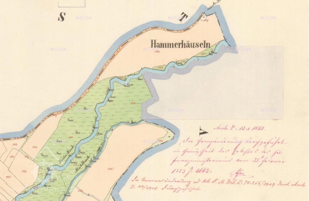 23.2.1883 provedeny změny katastrálních hranic, sloučeny části mlýnského areálu na katastrech Nového Sedla a Ervěnic, celek připojen k Ervěnicím