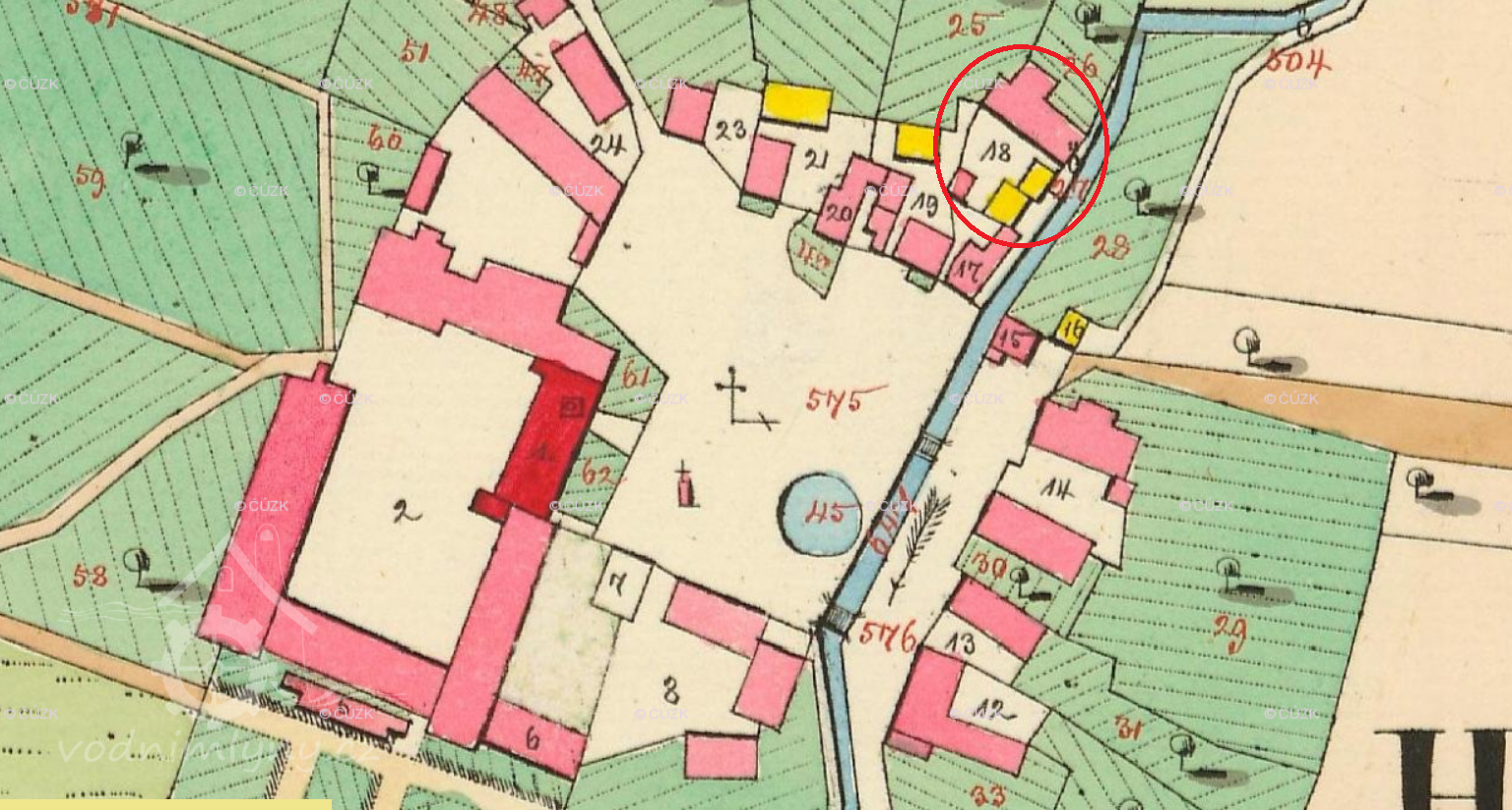 1794 mlýn ve vlastnictví mlynáře, který platí obilní daň 19 strychů a 2 měřice a náhradu za výkrm prasat ve výši 2 zlaté a 30 krejcarů
