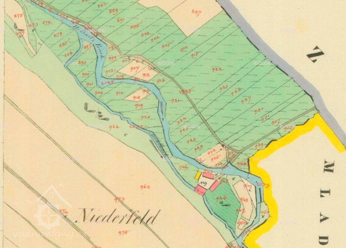 vlastnil hlavnický mlýn mlynář Schilder. Mlýn tehdy pohánělo vodní kolo na horní vodu o výkonu