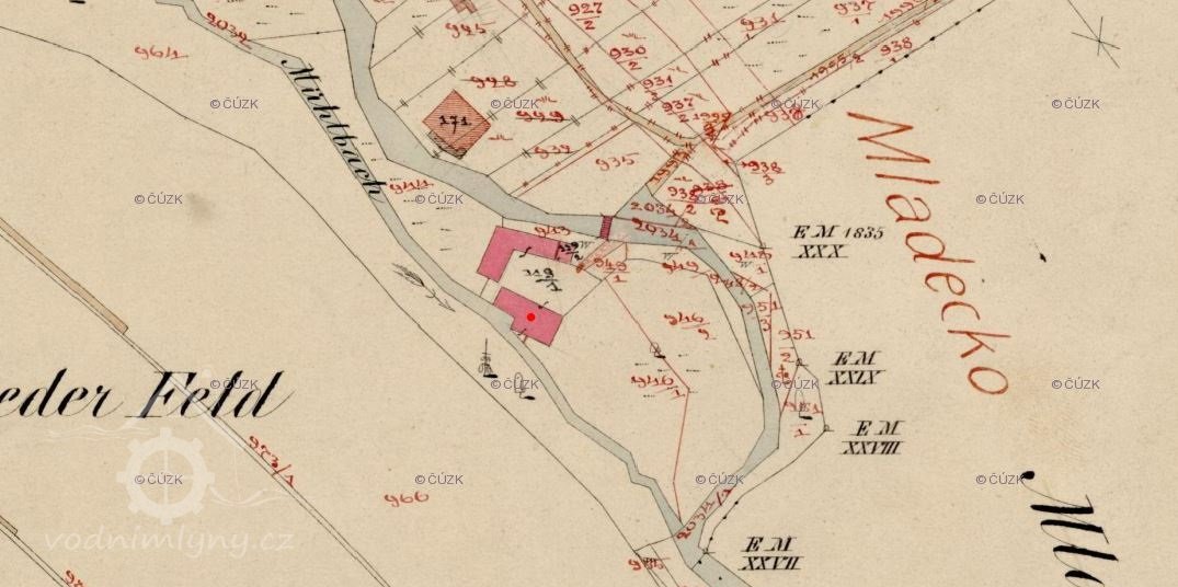 Popis1930: 1 kolo na svrchní vodu, hltnost 0,14 m3/s, spád 4 m, výkon 4,8 HP (3,55 kW)