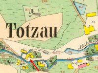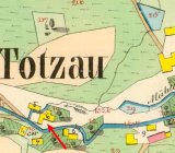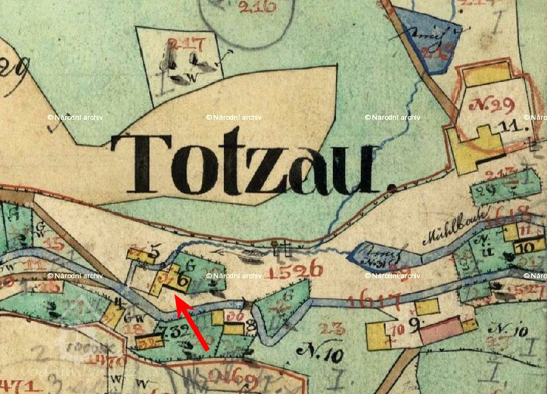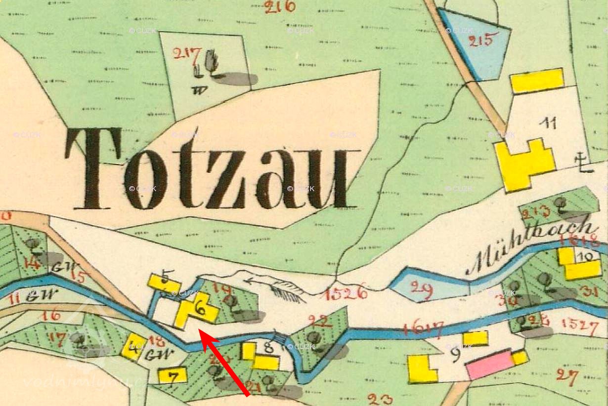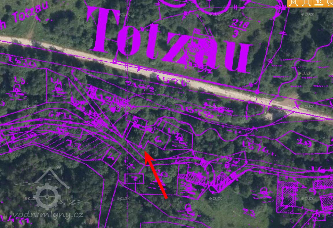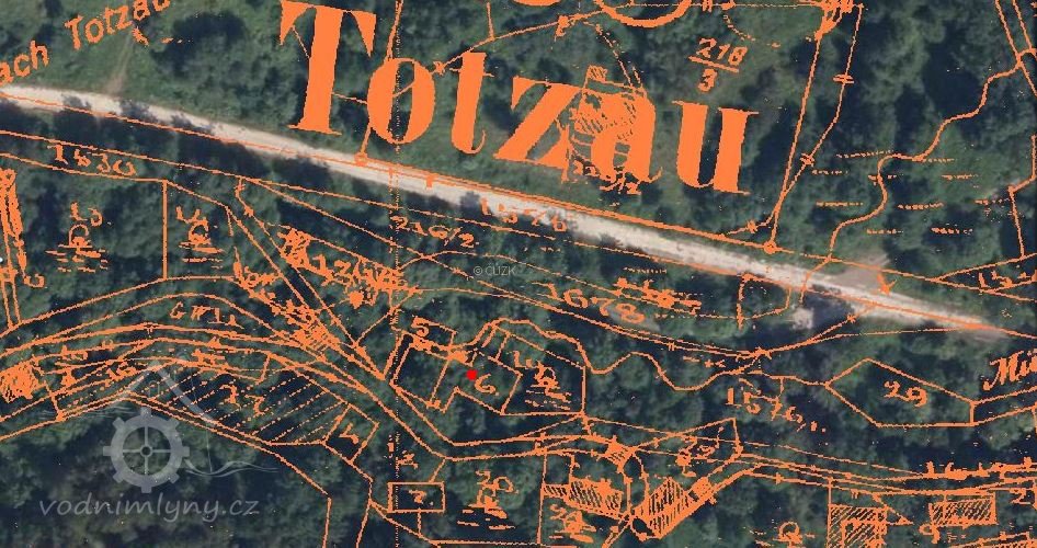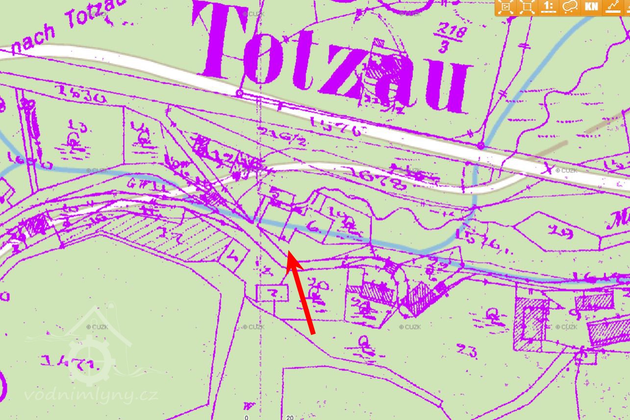 Zaniklý mlýn se nacházel v dnes již zaniklé obci Tocov (Totzau) na území Vojenského újezdu Hradiště.