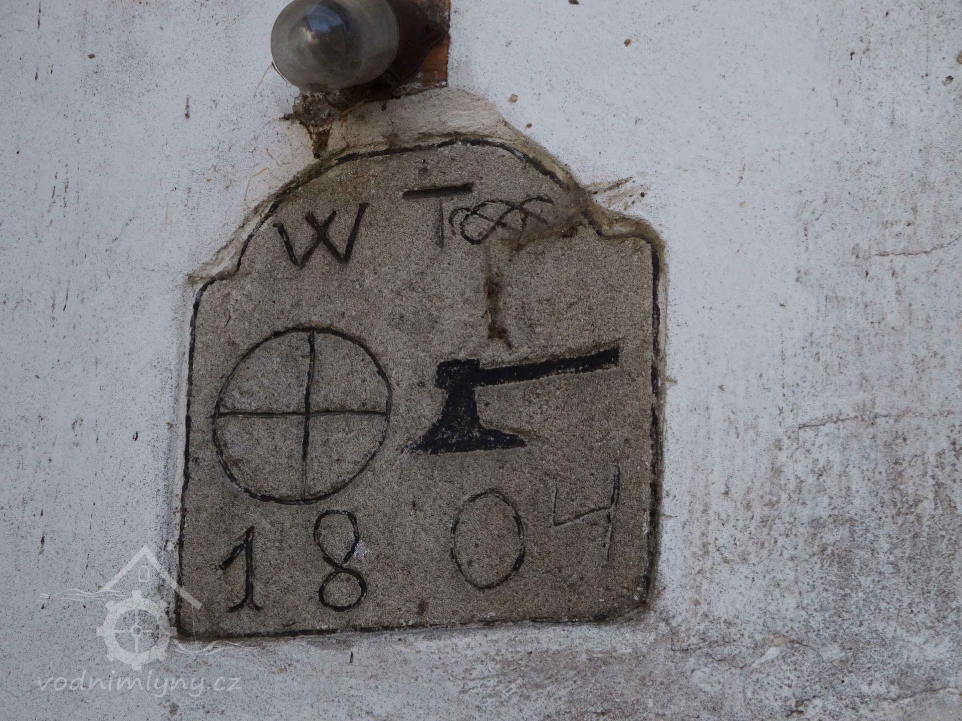 Na počátku horního vodního náhonu byl stanoven na č. parc. 597 obce Dudín vodní cejch. Sestává se z kamenného sloupce, na jehož povrchu jsou vytesána písmena J. T. a rok 1891. Na straně tohoto sloupce k vodě obrácené jest vodorovná rýha 40 cm pod povrchem hluboko, jejíž střed značí výšku splavu. Fixní bod jest vytesán na skále ve vzdálenosti 27,60 m od cejchu u lesa ve tvaru J. T. (trojúhelník na špičku) 1891. Druhý fixní bod u mlýna jest vytesán na kámen na rohu zdi pily při hladině vodní zazděném ve tvaru J. T. (trojúhelník na špičku) 1891.“