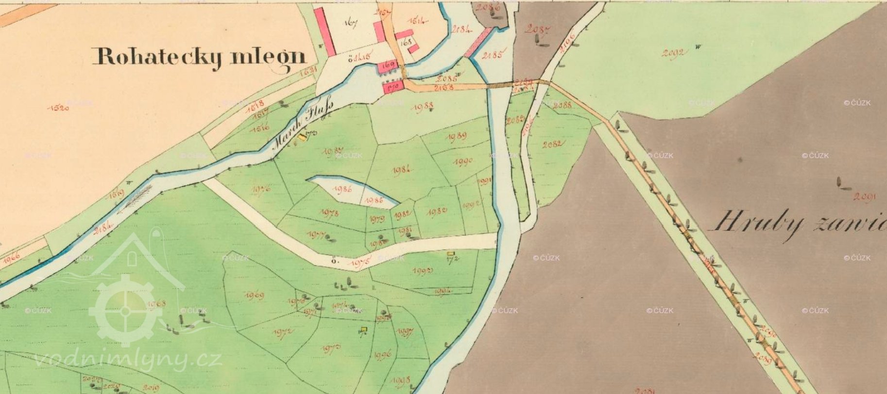 Základem vzniku je bývalý panský dvůr, který vznikl někdy na přelomu 15. století v době pobělohorské když dostal do zástavy Jan z Žerotína strážnické panství, které zaplatili jeho synové a stalo se tak jejich vlastnictvím. Ke strážnickému panství patřil i Rohatec s rozsáhlými polnostmi v jehož blízkosti Žerotínové zřídili panský dvůr a vodní mlýn, později pak pilu s vodním náhonem. Jako pohon posloužila řeka Morava, jedno její rameno, tehdy zvané Tečelec.