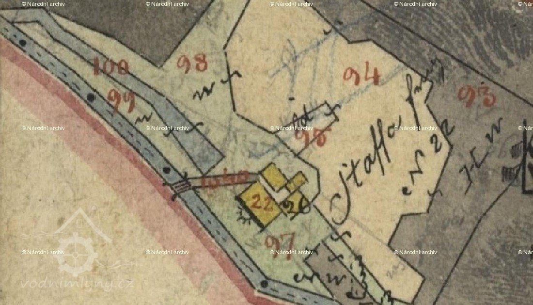Na skice z r. 1841 je uveden majitel mlýna Franz Staffa.