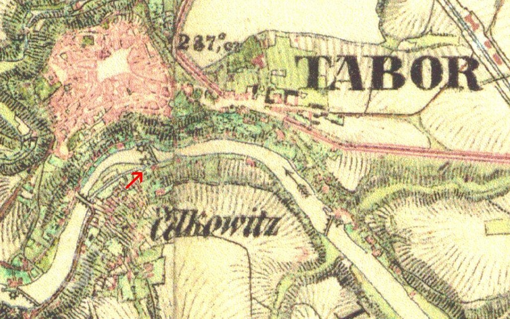900 m jižně od kostela Proměnění Páně v Táboře