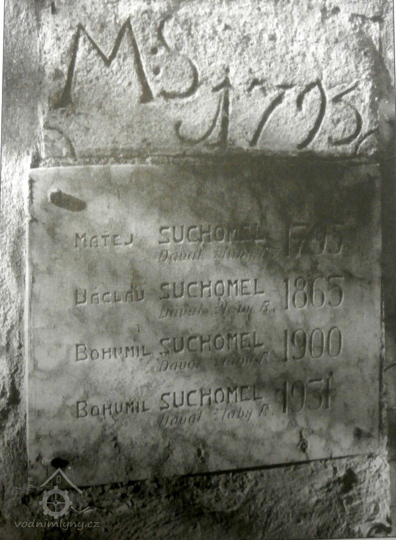 1827 + Matěj Suchomel, 1826 prodal mlýn synu Josefovi za 2000 zl. stř.