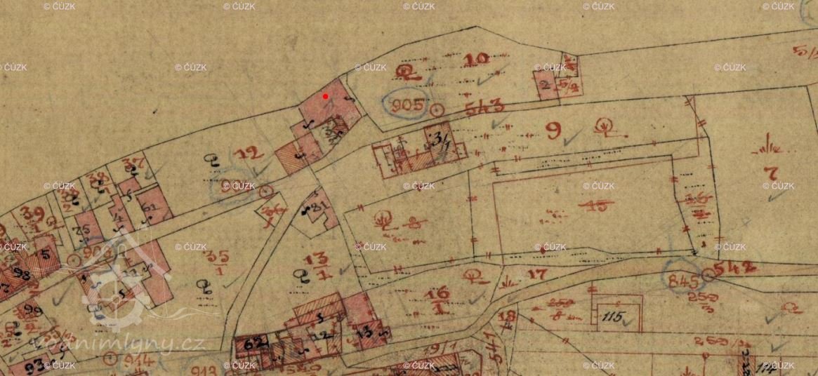 1629 majitel Jan Mucha, mlýn má 1 kolo, při mlýně 4 strychy polí