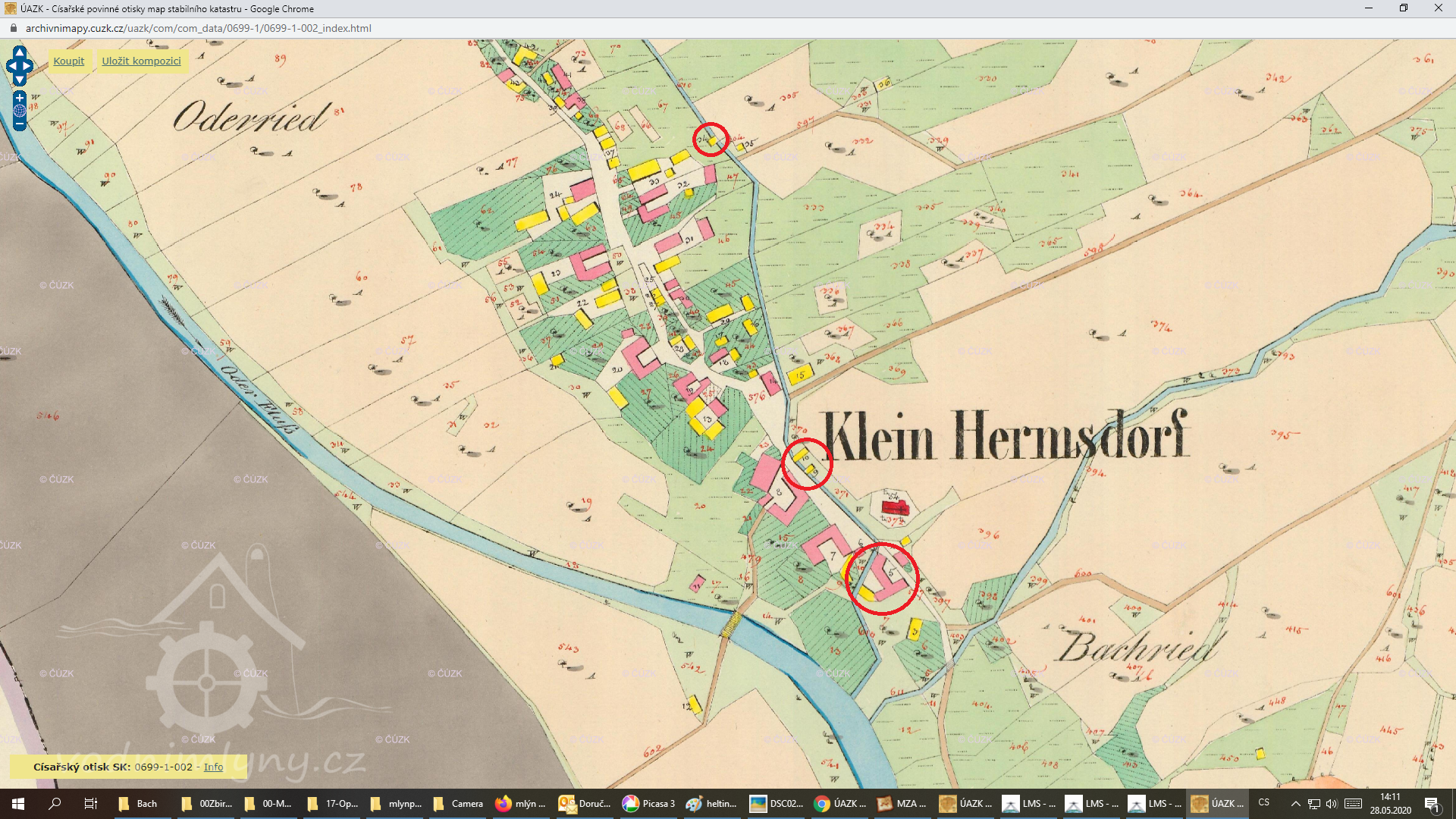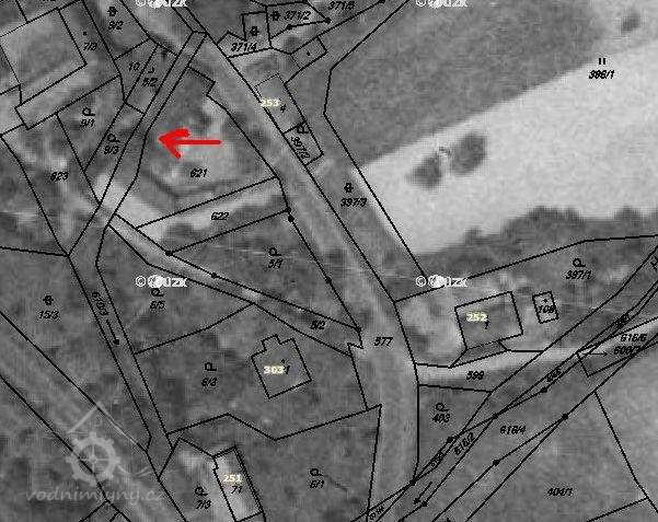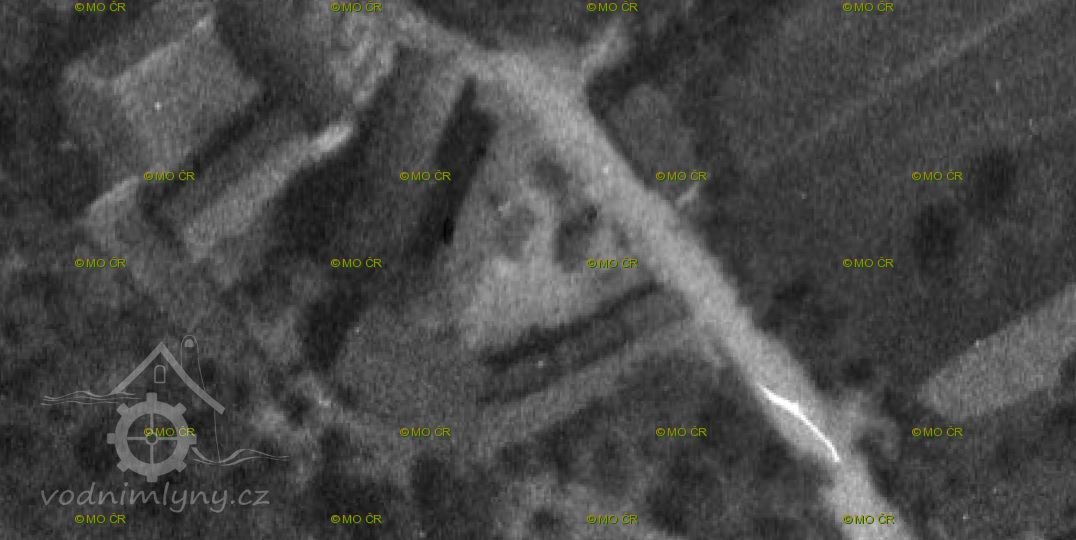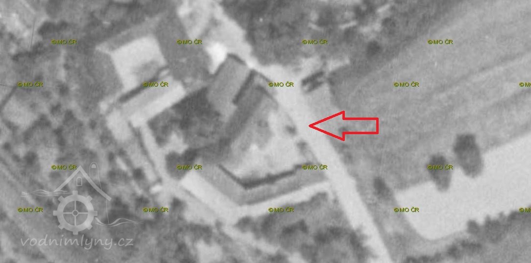 Ještě v 50. letech 20. století je z leteckého snímku zřejmé, že budovy bývalého mlýna stály.