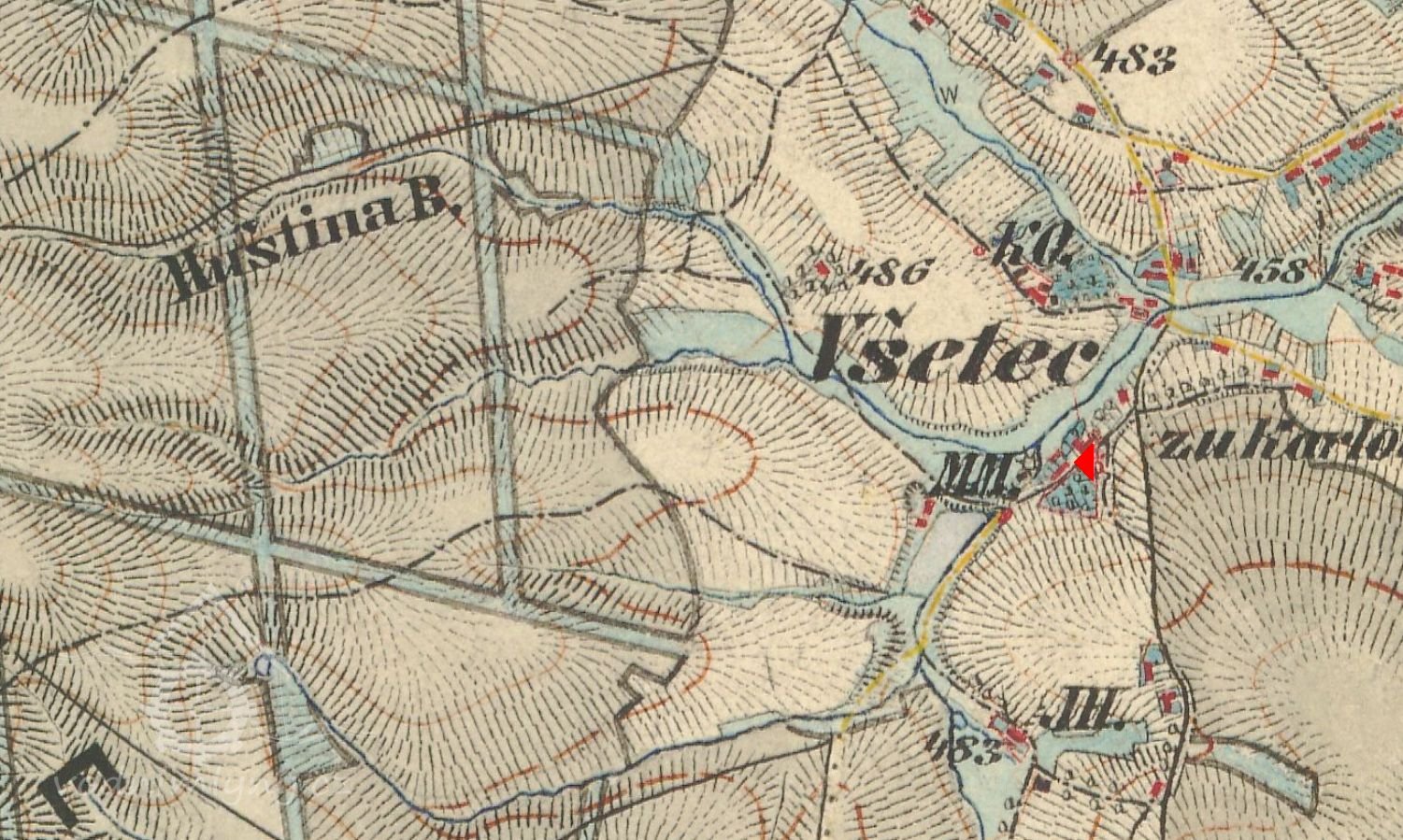 - mlýn leží pod rybníkem napájeným vodou potoky a umělým náhonem svádějícím vodu z povodí od severovýchodu z území katastr.obce Všeteč;