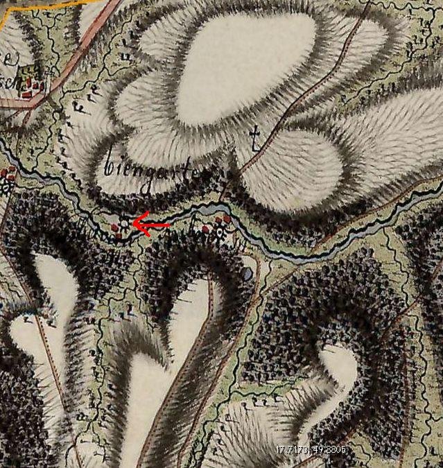 Mlýn stával na samotě pod lesem na vodním náhonu napojeném na říčku Hvozdnici mezi Mladeckem a Litultovicemi v osadě Luhy.