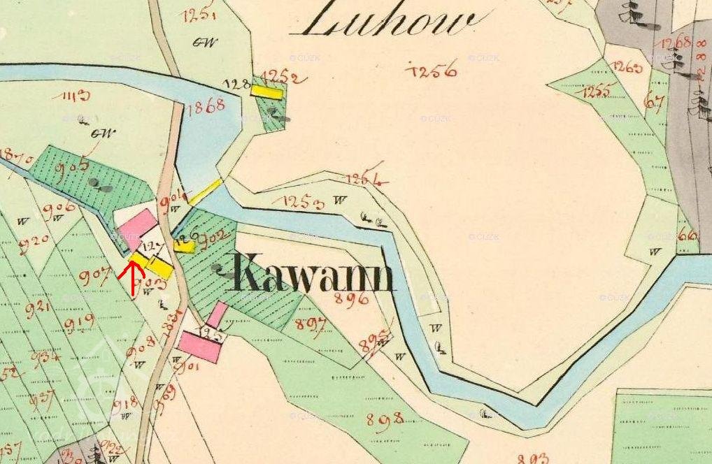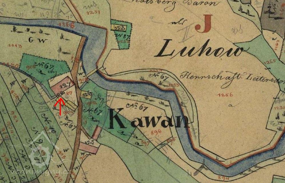 Prvním z těchto mlýnů byl Kavanův mlýn čp. 67 zvaný též Vrchní či Horní mlýn. Stával na samotě pod lesem na vodním náhonu napojeném na říčku Hvozdnici mezi Mladeckem a Litultovicemi v osadě Luhy. V polovině 18. století byl Kavanův mlýn v držení Jana Fridricha Kostalského (Kastala), měl dvě složení a každoročně mlynář z něho odváděl 40 zl. 40 kr. činže.