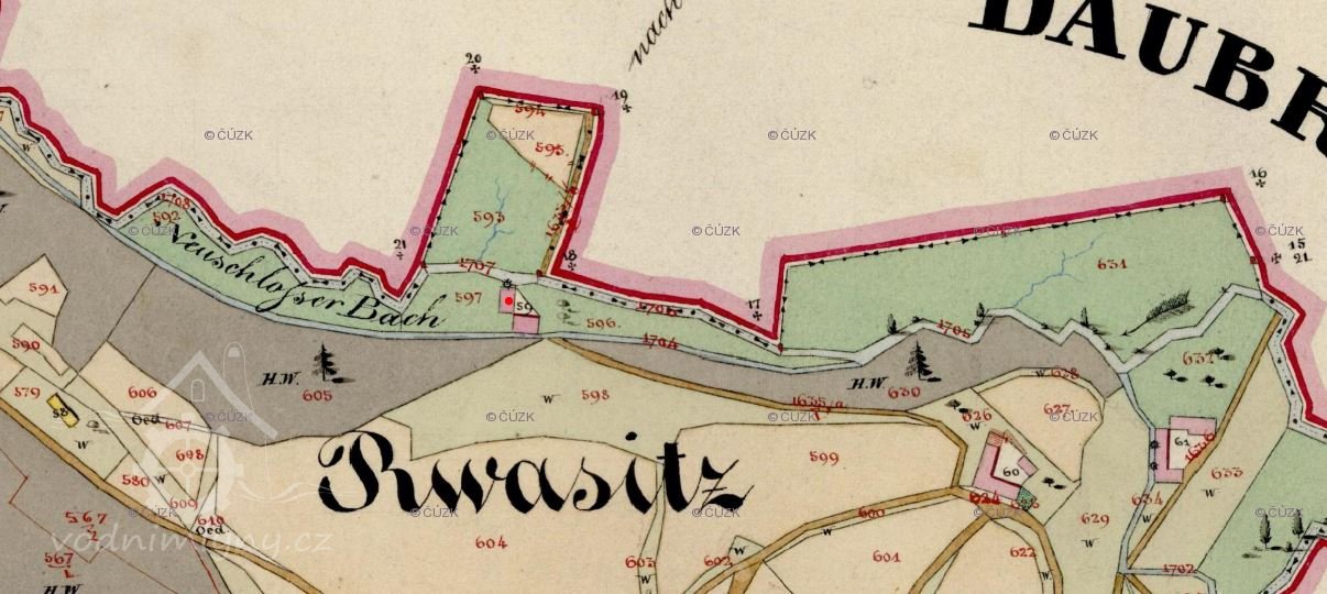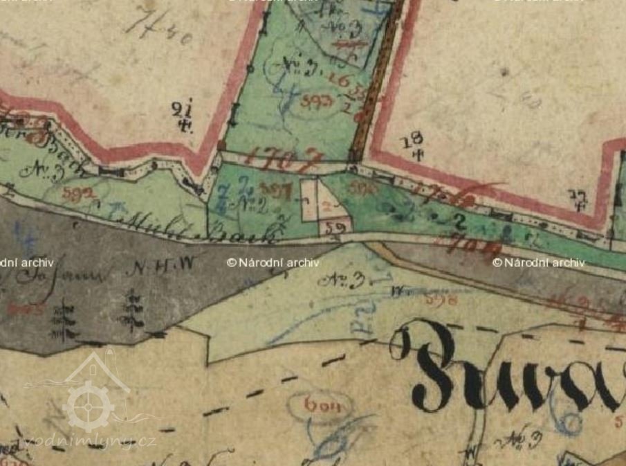 1757 Tereziánský katastr ve Rvasicích 1 mlýn