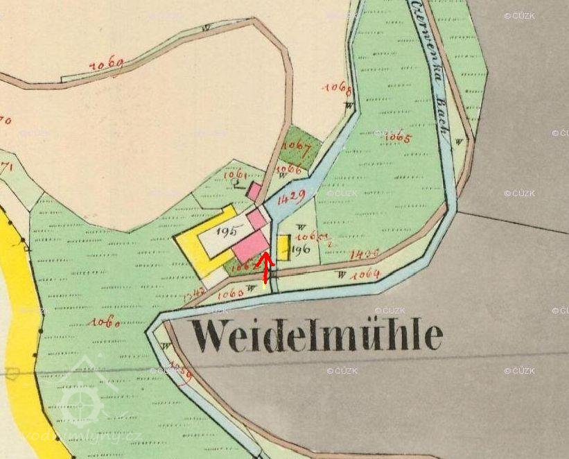 Vrbový mlýn, nazývaný též Dresslerův mlýn, německy pak Weide/l/mühle, vlastnil roku 1738 mlynář Václav Matyáš.