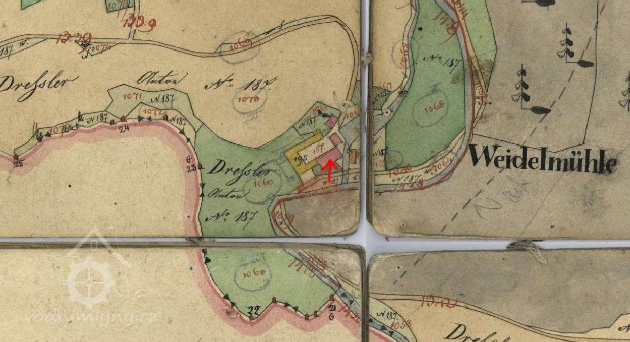 Dne 30. června 1806 prodal tzv. Vrbový mlýn čp. 187 o jednom složení Jan Dressler svému synu Antonínu Dresslerovi za 600 zlatých.