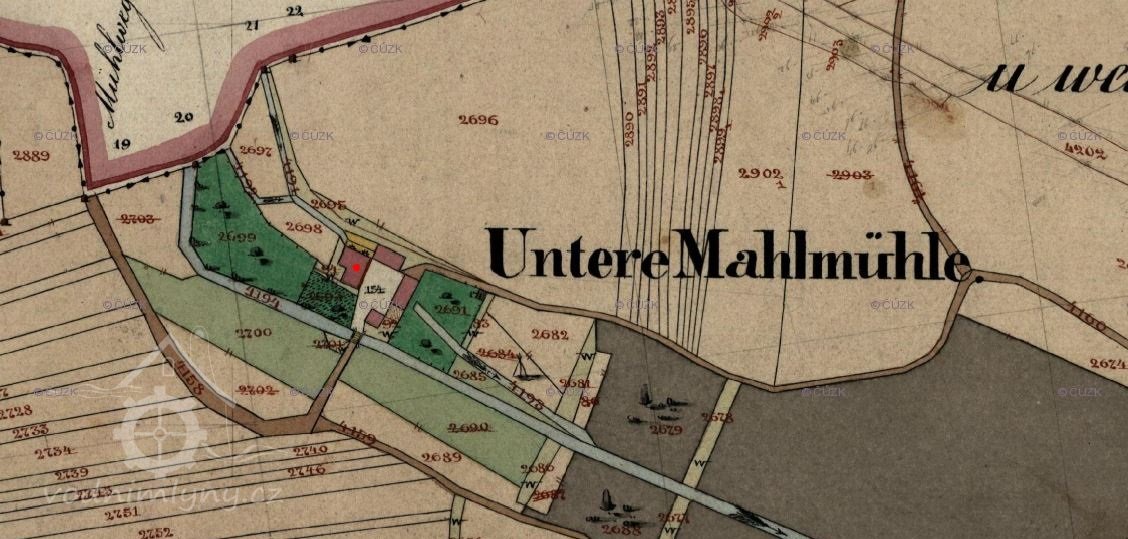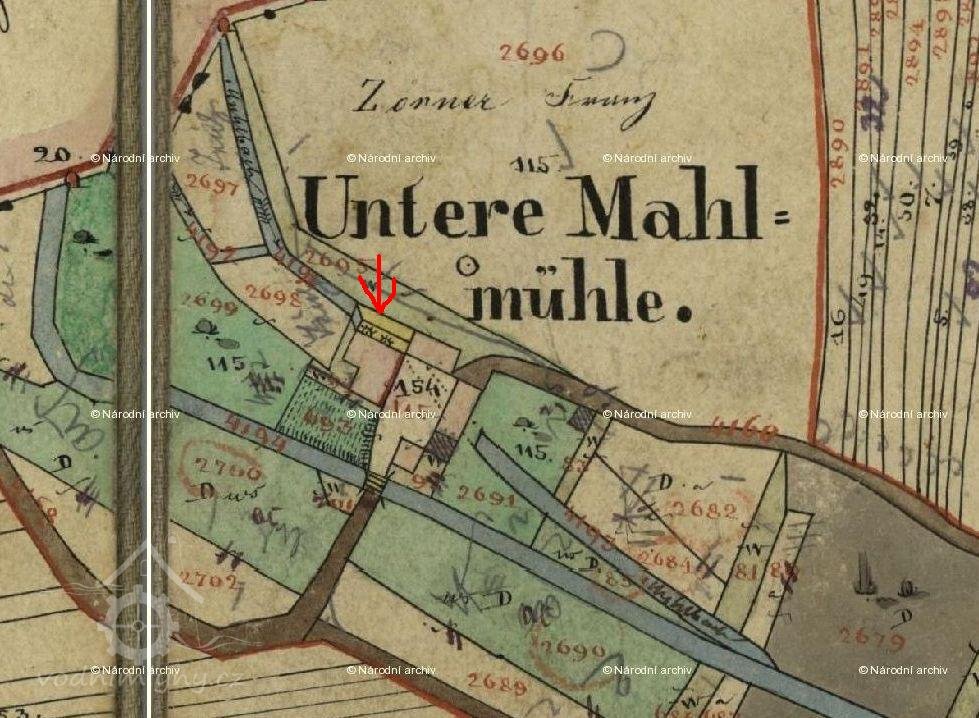 Na indikační skice je jako majitel uveden mlynář Zörner, který hospodařil i v Hořejším mlýně v Lenešicích.