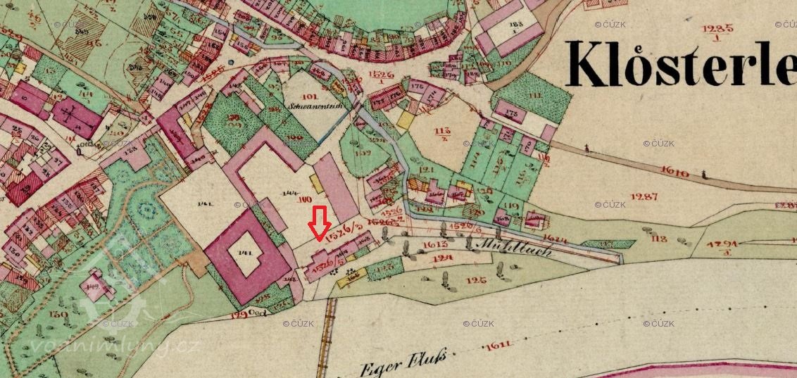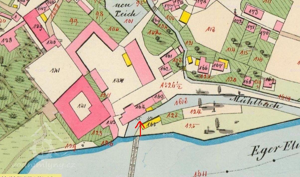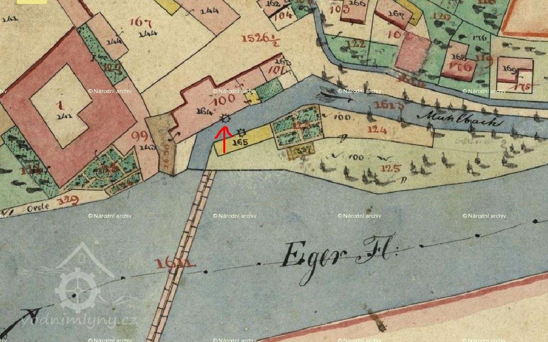 Oharský mlýn / Egermühle/ stál u řeky Ohře pod zámkem. Dal jej postavit Leo z Fictumu v roce 1574 a mlýn patřil až do roku 1700 vždy panství.