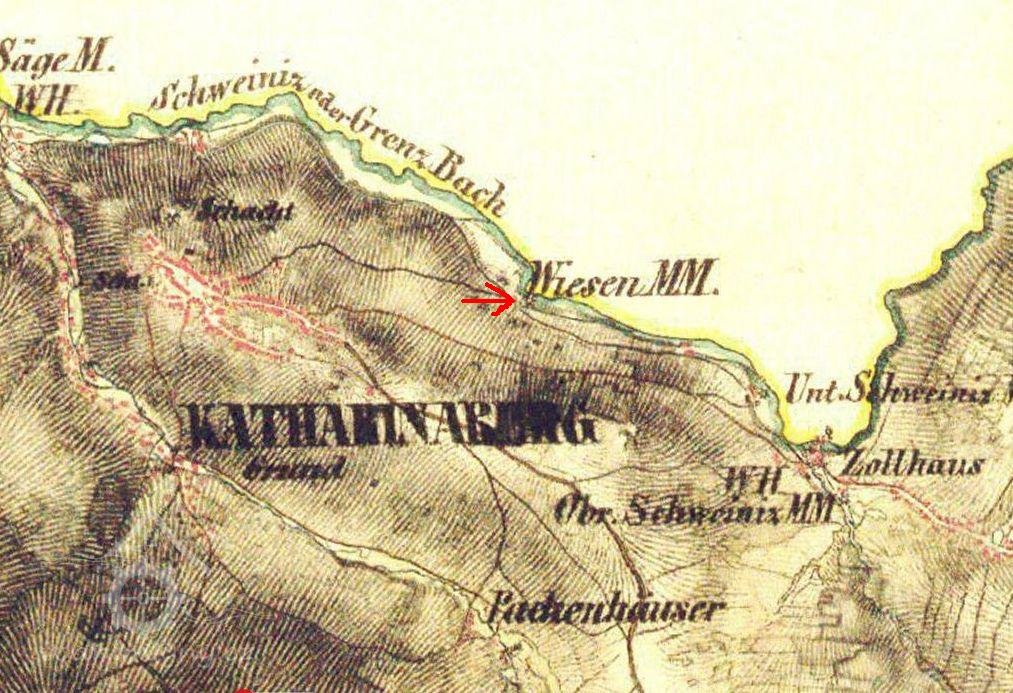 Tento mlýn stával v obci Hora Svaté Kateřiny na potoce Svídnice bezprostředně na hranicích s Německem. O této obci se uvádí, že už roku 1528 byla jmenována městem. Tereziánský katastr uvádí devět poddanských mlýnů o jednom kole, při pěti z nich byla pila. Všechny byly na nestálé vodě. Nejdéle tu byl Luční mlýn, který se nacházel v dolní části obce pod Liščí horou, kde poblíž bývala stará huť z počátku těžby rudy; to prý bylo asi roku 1300. V místech u mlýna byl nalezen i původní mlýnský kámen.