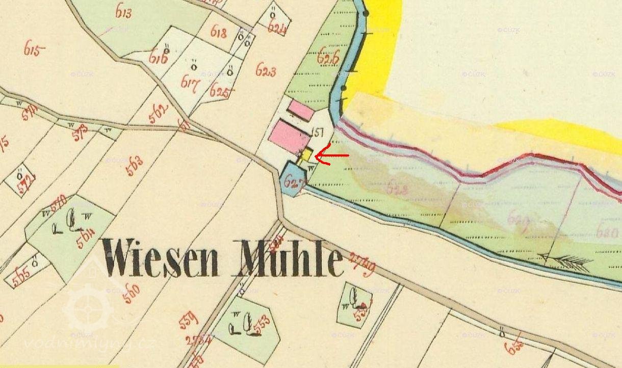 Na indikační skice z roku 1842 je uveden jako majitel mlýna čp. 215 Anton Hermsdörfer. Další jména mlynářů ani bližší historie mlýna nejsou známy.