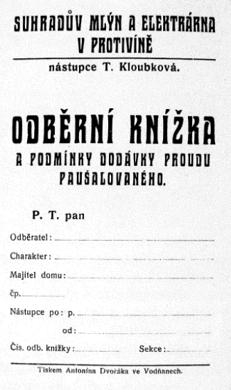 1916 provoz vede dcera Terezie provd. Kloubková, stárek odveden, pro nedostatek personálu zastaveno mletí, provozována jen elektrárna
