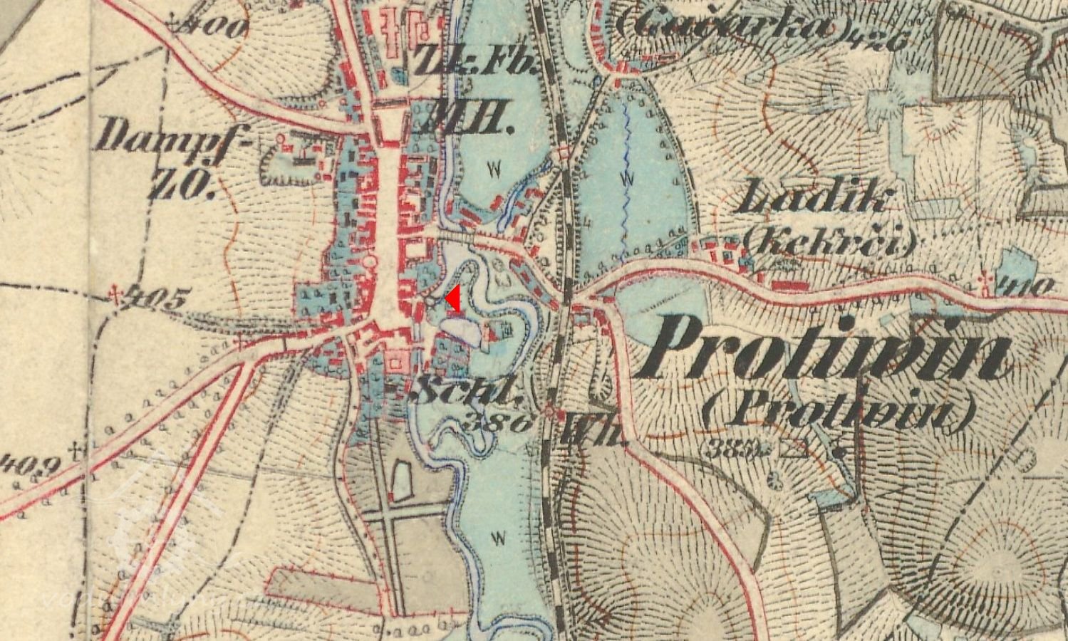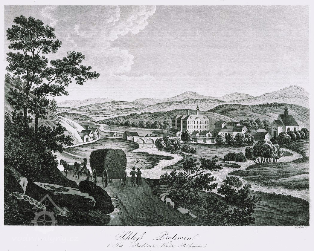 Při předání Protivína r.1598 do rukou rytíře Bohuslava Malovce z Malovic a Dřítni je společně s mlýnem uváděna i pila.