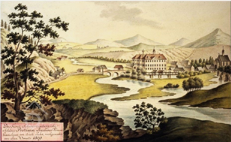 V r.1562 při předání protívínského statku císařem Ferdinandem I. Do dědičného vlastnictví Jáchyma z Hradce je v soupisu uváděna tvrz Protivín s pivovarem a mlýnem...