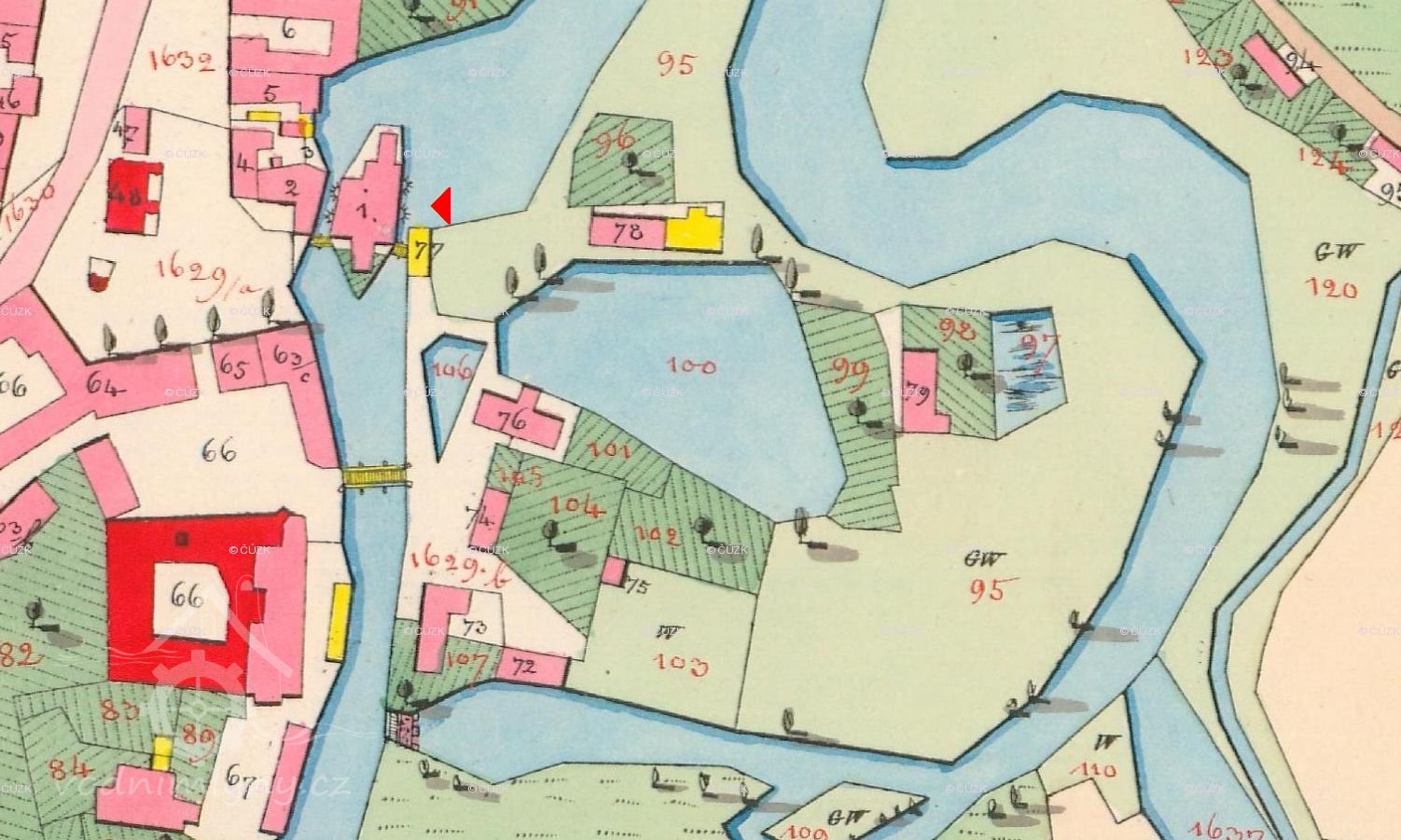 1874: 5 kol na spodní vodu ve dvou vedle sebe ležících žlabech pro mlýn, 6. kolo pro pilu