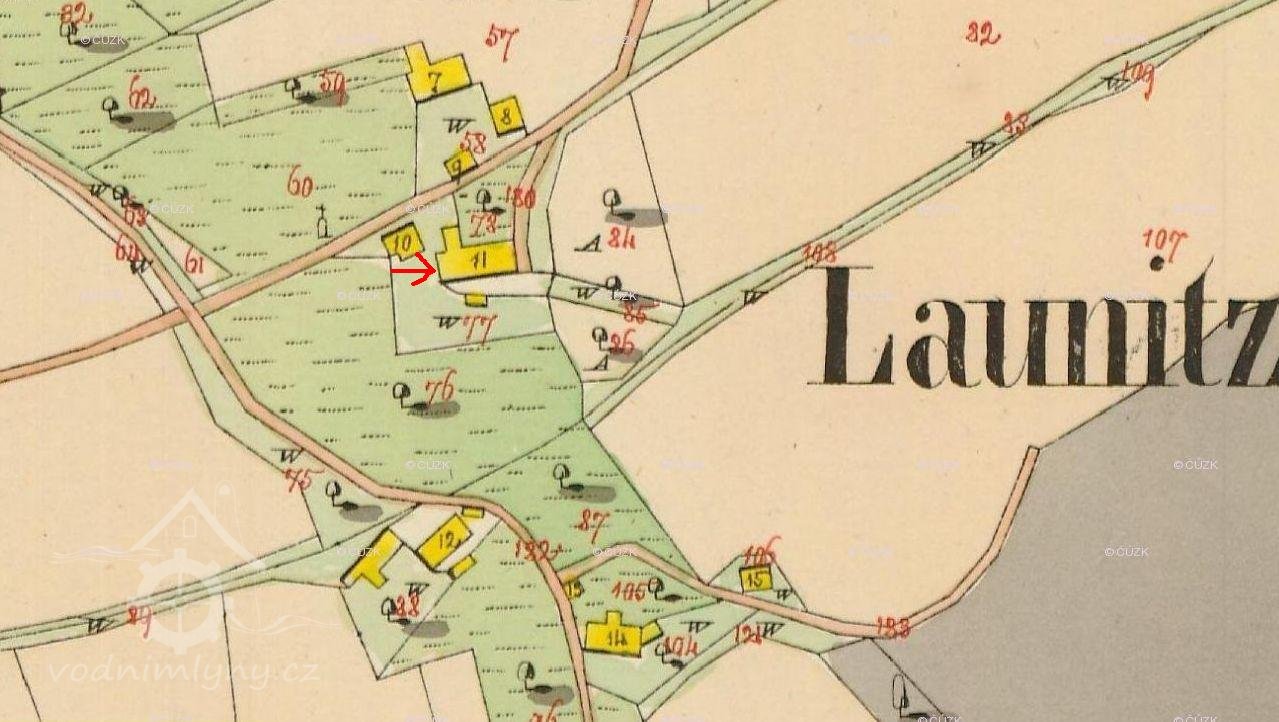 K obci Janov /od r. 1986 k obci Hamr/ patřila osada Lounice, která se rozkládala na bezejmenném potoce o něco výše než Hamr. Vodou z potoka byl napájen rybník v obci a z rybníka byla voda pouštěna na jednoduchý dřevěný mlýn u chalupy čp. 7. Mlýnek stál na jižním konci vesnice na tzv. Červené louce, nazvané podle květiny smolničky /Viscaria vulgaris/.