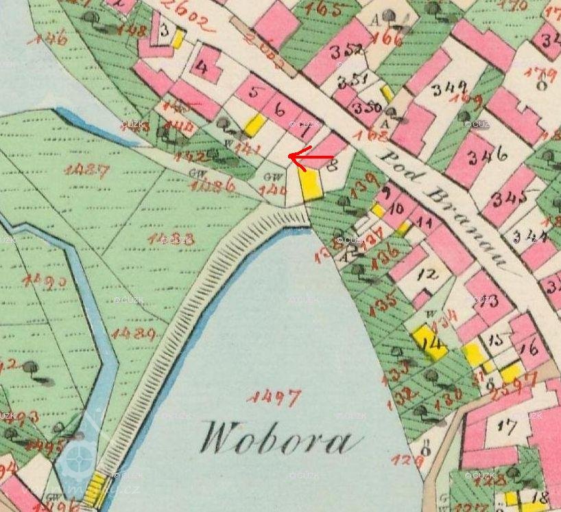 V roce 1528 se v okolí mlýna připomínají dvě poustky - pustá místa - z nichž jedna patřila Vlhovi. Rytíř Jan Trčka z Vítence, držitel poloviny příbramského zboží, rovněž v onom roce povolil vladykovi Zdeslavu Vojířovi „u rybníka Hořejšího na Oboře, aby mohl žlaby položiti na tom prahu starém u toho mlýna a vodu držeti i semlíti k své potřebě“.