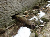 Popis dvě vodní kola na vrchní vodu, z nichž horní mlýnské má průměr 2,85 m a šířku 0,48 m