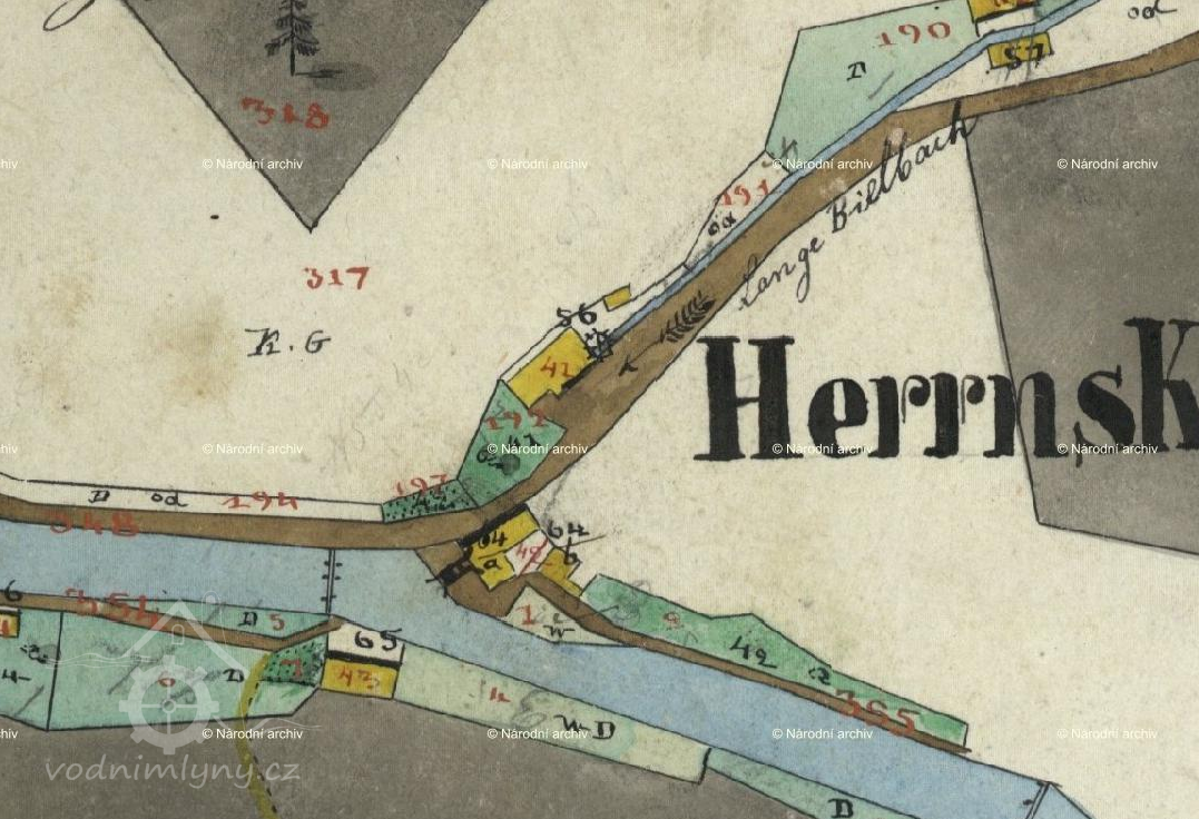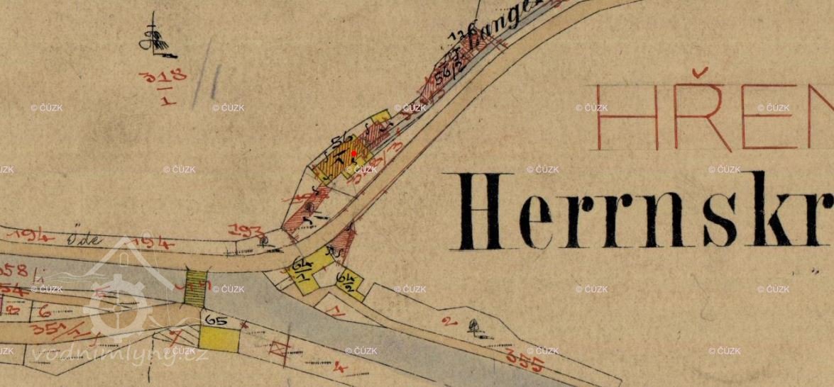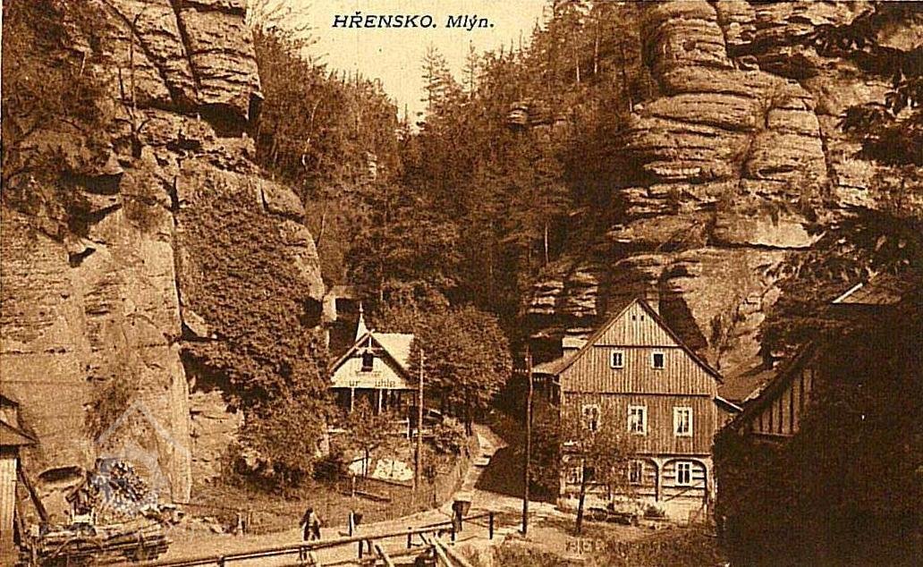 Tento je jmenován také jako horní mlýn, který sloužil poddaným ze Hřenska, Mezné a Bynovce.