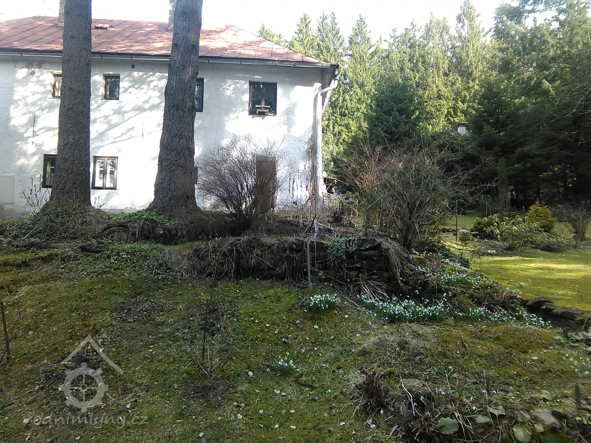 Obytné stavení mlýna Tannenzapfen (Jedlová šiška) stojí po levé straně silnice při výjezdu z Frýdavy na Pasečnou.