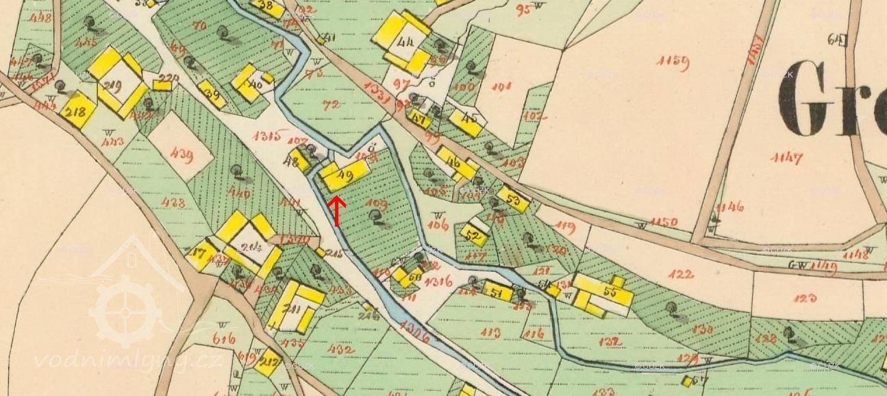 V roce 1727 koupil mlýn Václav Koráb po zemřelém otci Floriánovi za 100 fl. Florián Koráb mlýn vystavěl. Dalším mlynářem byl František Römer, po něm Antonín Müller. Oba mlýn koupili za 200 fl. Jan Müller mlýn koupil od otce roku 1790 za 600 fl. Ten jej roku 1818 postoupil synovi Antonínu za 544 fl 13 kr. Od něho mlýn kupuje Josef Štangler za 4550 zl. Mlýn byl s jedním složením. Štangler zbořil valchu při mlýně a postavil kvelbík, kde zamýšlel krupařit. Roku 1870 Josef Pavel přestavěl stodolu a chlév. Mlýn roku 1870 koupili Josef a Tekla Pávkovi z Trutnovska za 5 160 zl. Mlýn je uváděn jako malý, ve kterém se moc obilí nesemlelo a aby se vůbec rodina uživila, musela mít hospodářství. V roce 1908 mlýn převzal syn Jan. Po smrti Josefa Pávka v roce 1912 prodala jeho dcera Anna mlýn Josefu Machovi ze Lhotky. V roce 1915 mlýn koupil švec Josef Pivoňka z Kouřimi a roku 1921 jej prodal Františku Večerníkovi. Seznam vodních děl z roku 1930 uvádí mlýn o jednom kole na svrchní vodu na spádu 4, 50 m o výkonu 4 KS. Mlynářem byl František Večerník.