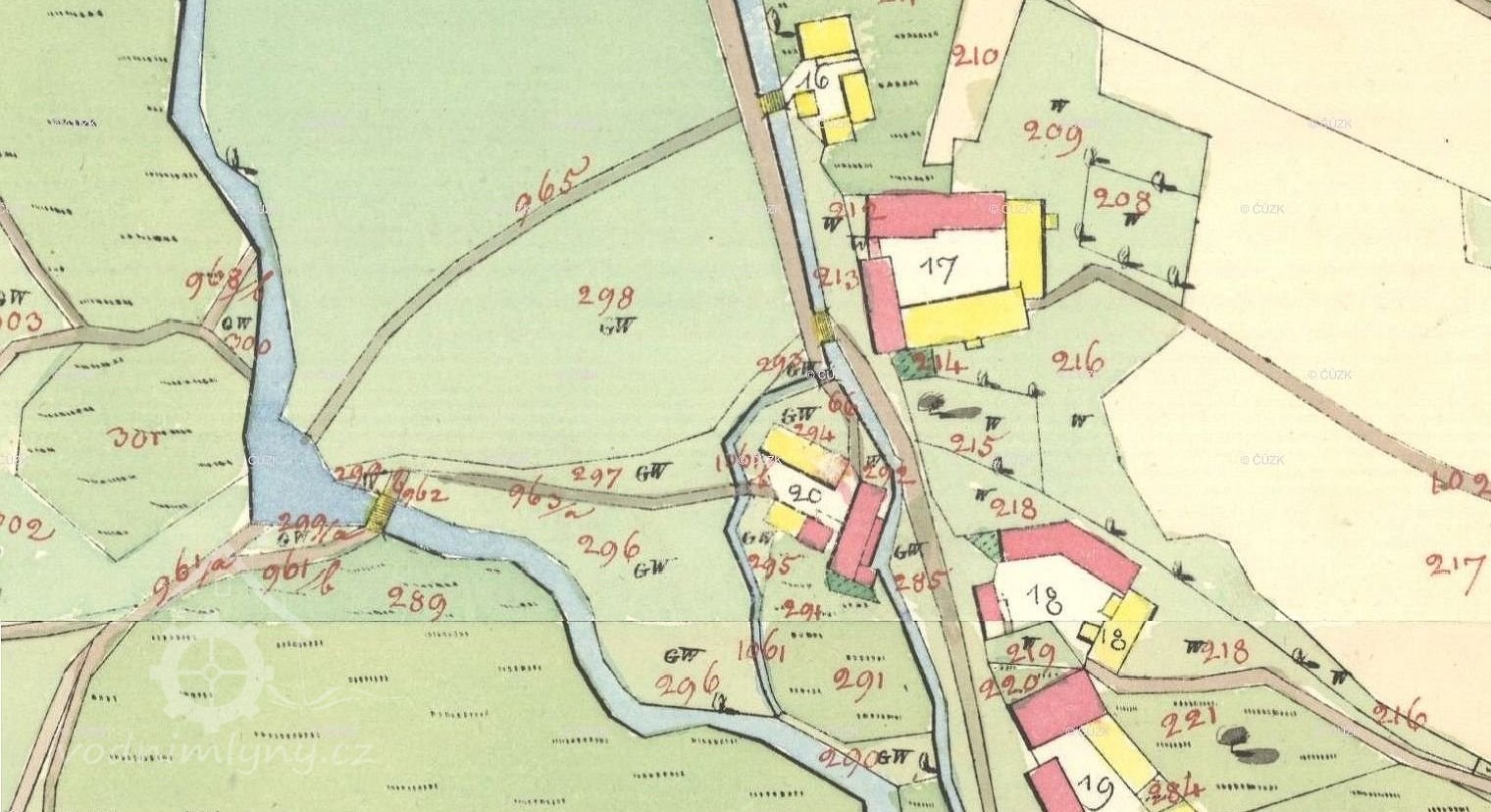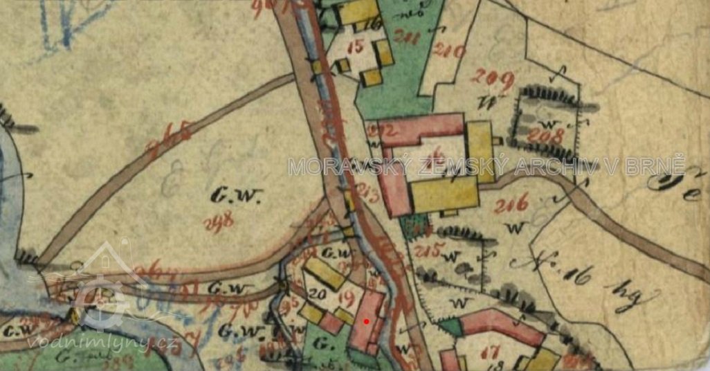 Popis1930: 1 kolo na svrchní vodu, hltnost 0,14 m3/s, spád 3,35 m, výkon 3,4 HP