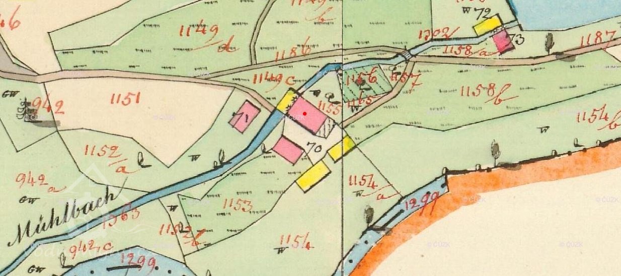 Mlýn se nacházel asi 2,5 km od středu obce Těšíkov