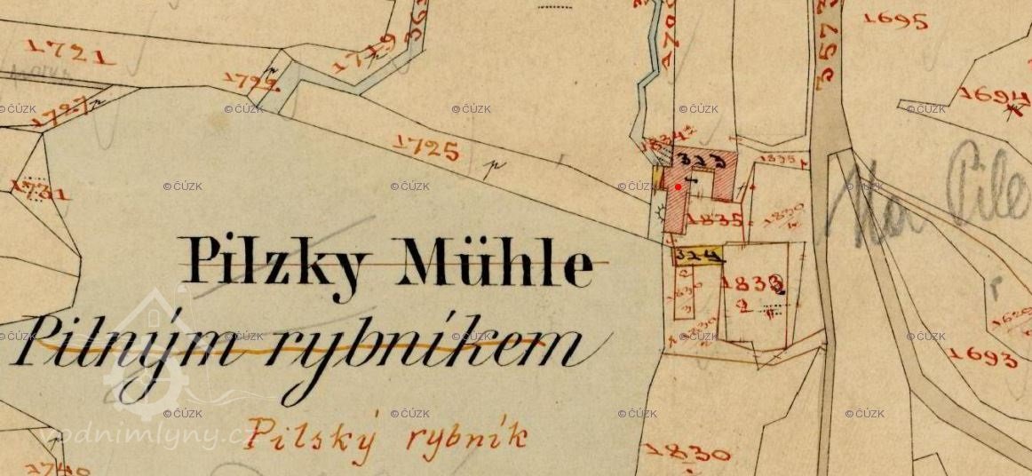 Mlýn s pilou uveden v Seznamech vodních děl  republiky Československé, majitel Jan Hradecký