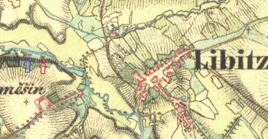 Na mapě II. vojenského mapování je značka pro vodní dílo vyobrazena u budovy čp. 85, která se nachází asi 120 m západně od Němcova mlýna čp. 83. To by odpovídalo údaji uvedenému v obecní kronice, dle kterého byl původně Němcův mlýn v budově čp. 85.