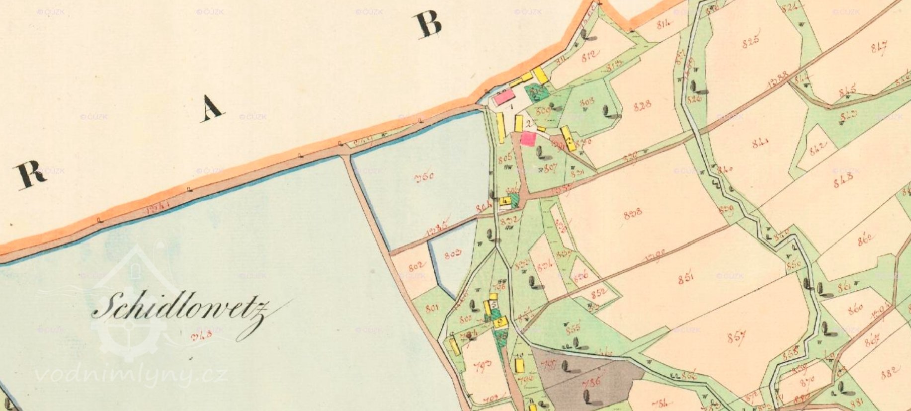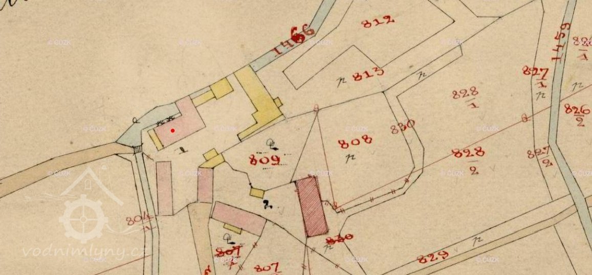 Popis1930: 2 kola na svrchní vodu, hltnost 0,4 m3/s, spád 2,6 m, výkon 19 HP