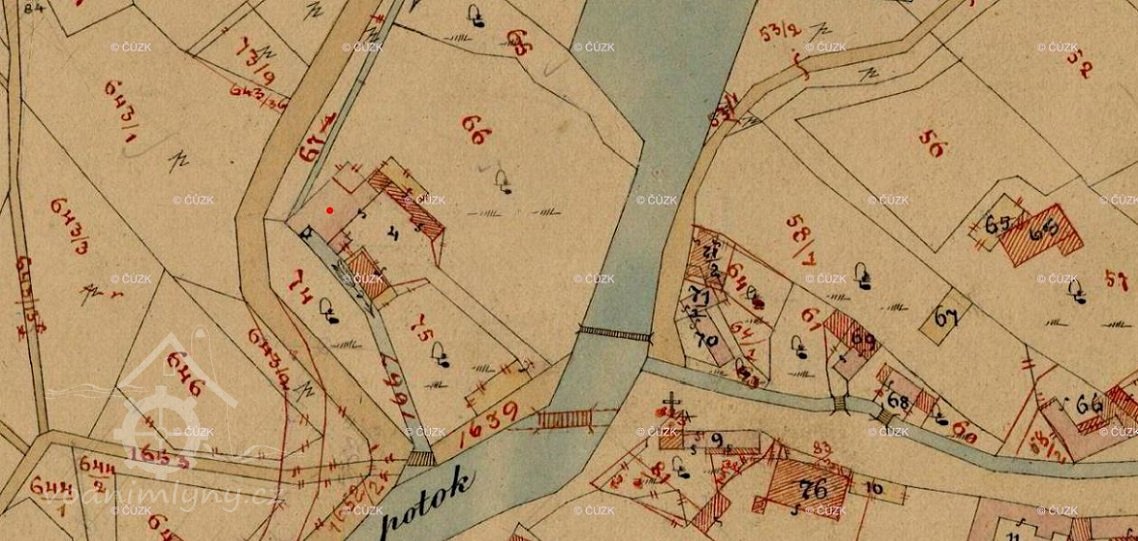 Zbývající vyvýšená část vodního náhonu v blízkosti budovy mlýna byla rozprostřena na okolním terénu při rozšiřování silnice.