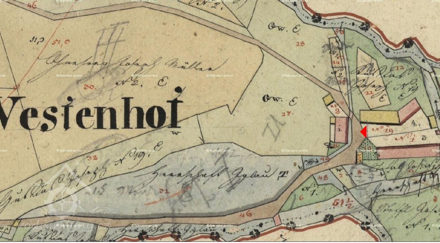 Dle obecního katastru osady Vestenhof z r.1945 byl majitelem mlýna čp.2, zvaného „U malého mlynáře“...Johann Ohnsorg. K usedlosti patřilo ještě 20 ha polí a luk.