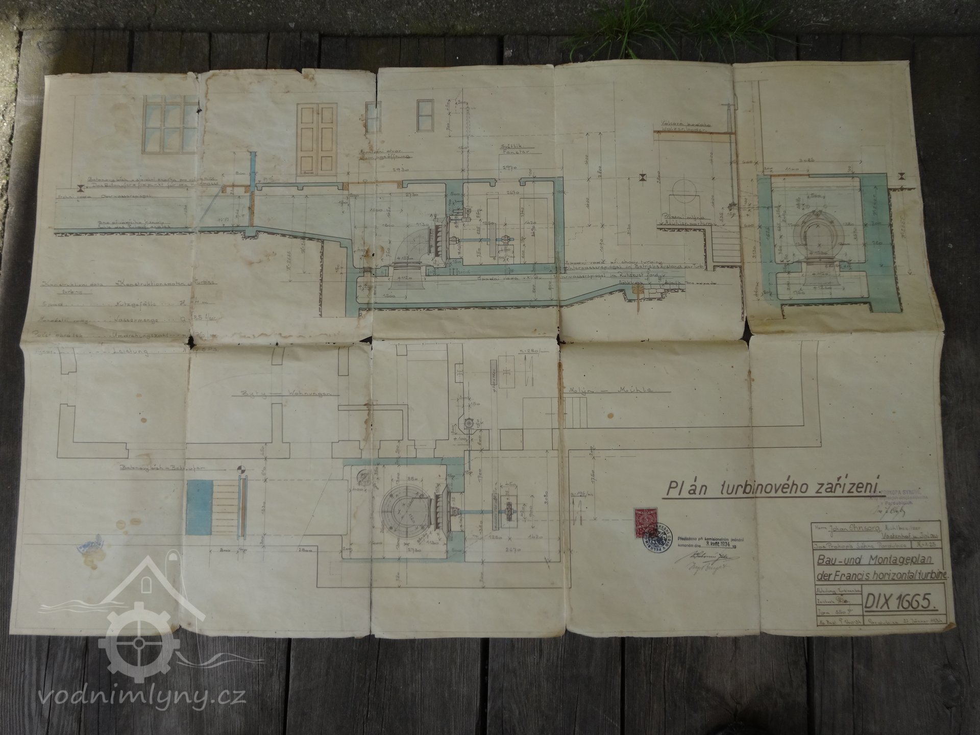 Stavidlem se bude voda pouštět do betonového kanálu 3 m dlouhého se skloněným dnem a z toho do turbínové komory s vnitřním průřezem 2,73x2,6 m, hluboké 2,59 m. V komoře bude umístěna Francisova turbína s horizontální osou s užitečným spádem 2,4 m; průměr oběžného kola 550 mm, největší průtočné množství vody 685 l/s; maximální výkon 17,5 HP.