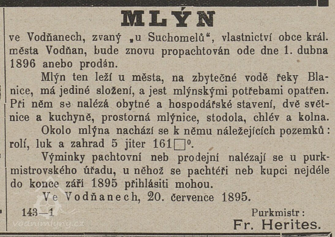 1.1.1773 od něho koupil mlýn Vojtěch Žahour z Louckého mlýna za 1350 zlatých